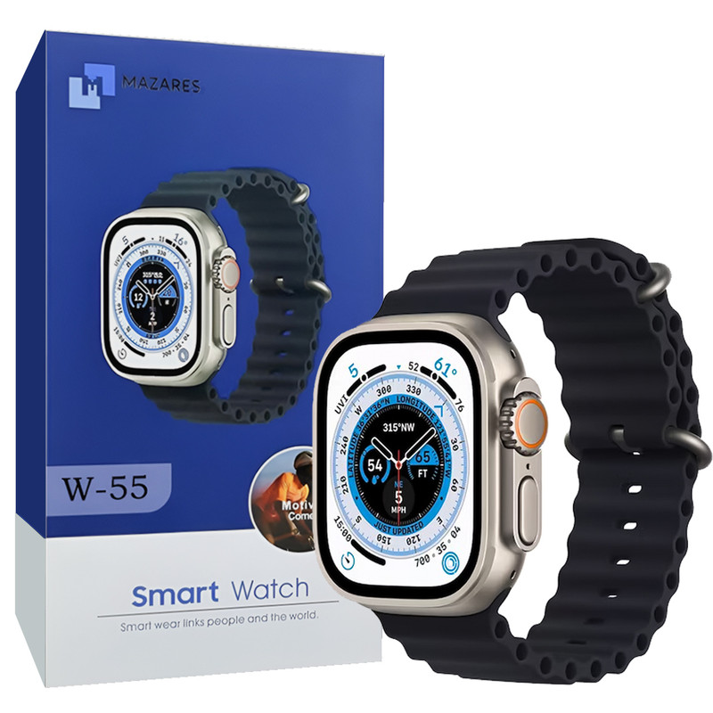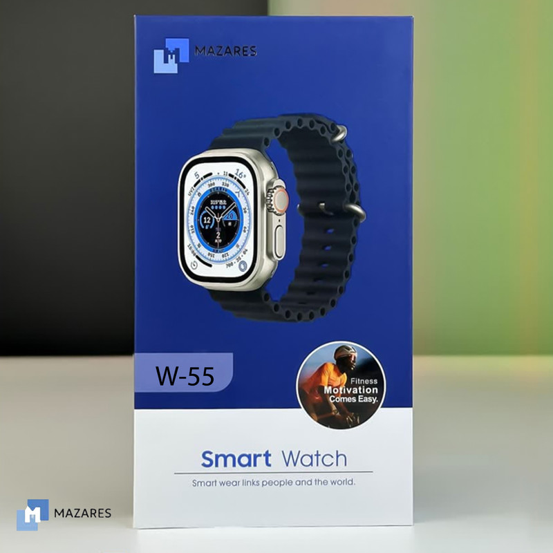 ساعت هوشمند W-55 یک نسخه جدید دیگری از سری W ساعت های هوشمند است که توجه بسیاری از مردم جهان را به خود جلب کرده است. این ساعت به شکل مربعی ساخته شده است که ظاهری مشابه ساعت اپل واچ دارد. علاوه بر این، دماسنج، مانیتور ضربان قلب، تماس بلوتوثی و مانیتور اکسیژن خون را دارا است. همچنین دارای امتیاز ضد آب IP68 است. قسمت پشتی ساعت دارای حسگر ضربان قلب است. همچنین دارای اتصال مغناطیسی برای شارژ است. دارای اسپیکر و میکروفون و باتری 160 میلی آمپر با قابلیت تعویض بند میباشد.