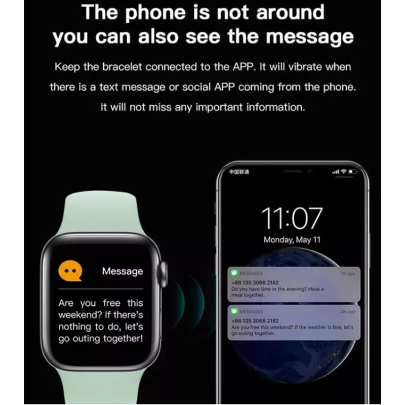 علاوه بر آن ساعت X7 قابلیت نمایش تماس و پیام رسانی به کمک اتصال به گوشی هوشمند از طریق اپلیکیشن را دارا می باشد.