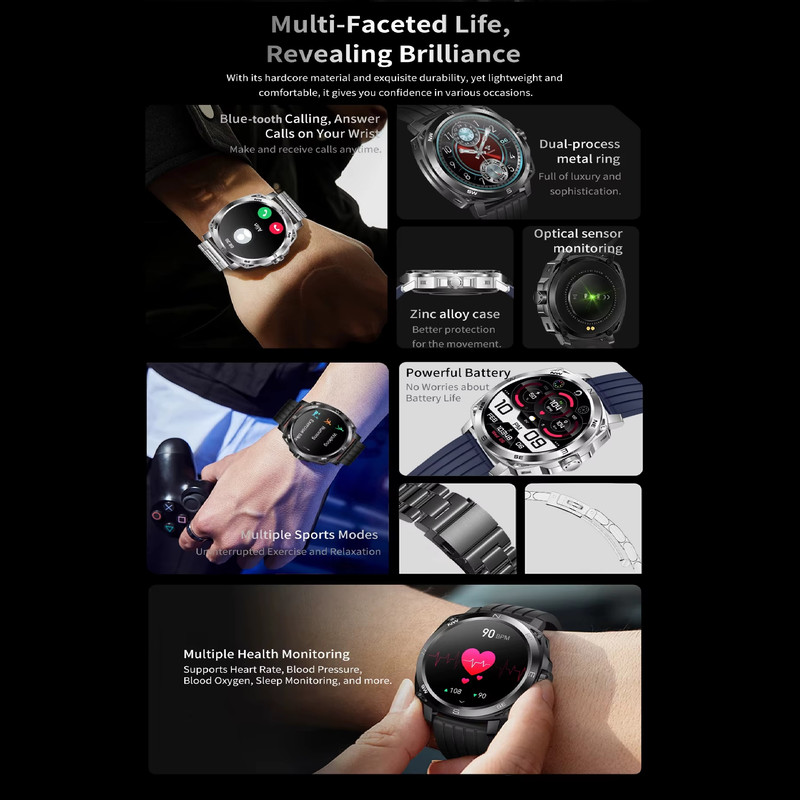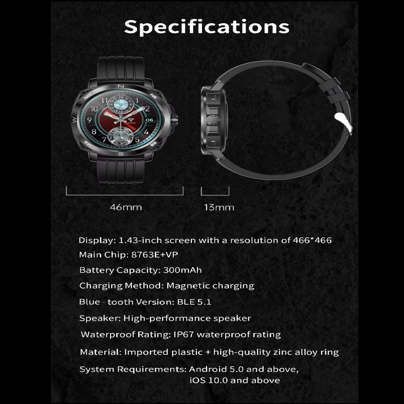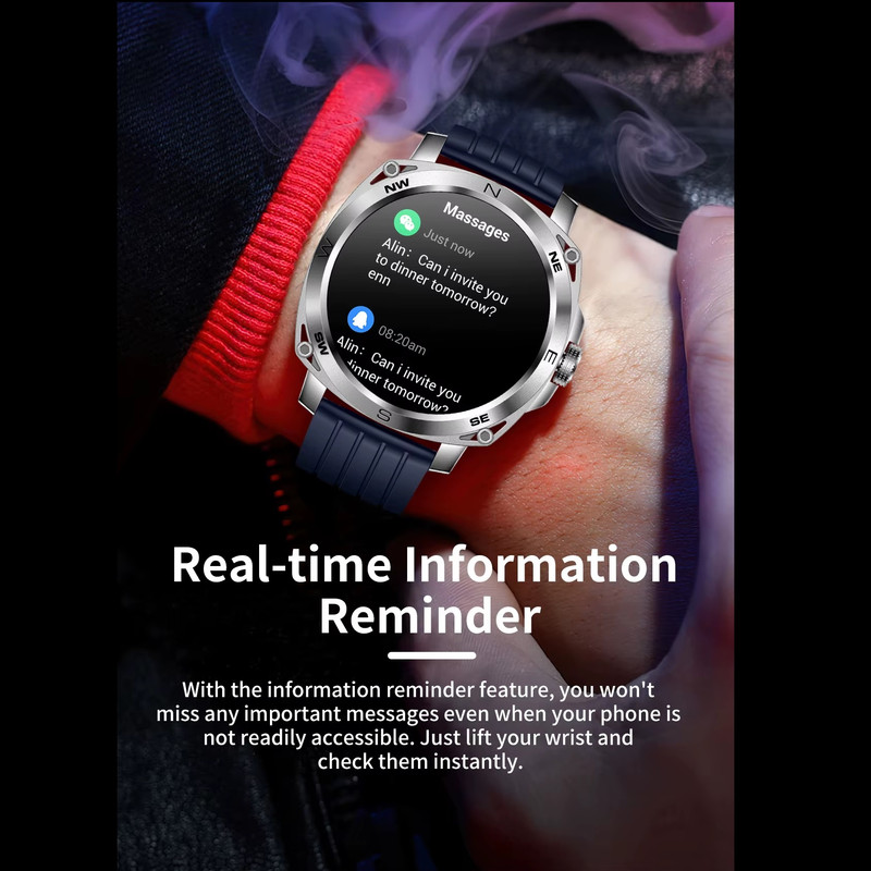 ساعت هوشمند مردانه اسپرت 1.43 اینچی ، ضد آب از جنس استنلس استیل AMOLED ، با توابع و ویژگی های خاص : تقویم، ساعت زنگ دار، کنترل از راه دور، شمارش معکوس، شبانه، ردیاب خواب، ردیاب تناسب اندام، یادآور تماس، پاسخ به تماس، پیام فشاری، یادآور پیام، تماس شماره گیری، ردیاب ضربان قلب، پرداخت، ردیاب فعالیت، ردیاب کالری، مانیتور ضربان قلب، Pedo , شتاب سنج, مانیتور تنفس, ردیاب چند ورزشی, موسیقی بازیکن، یادآوری کم تحرک طراحی خاص و حرفه ای شده است.