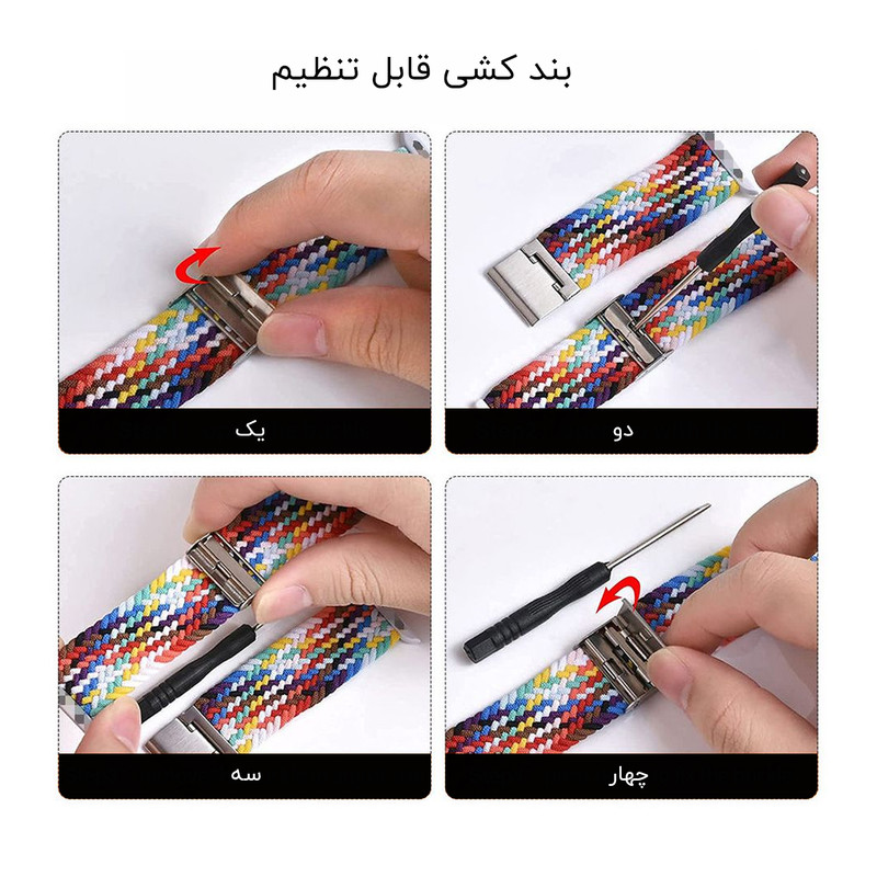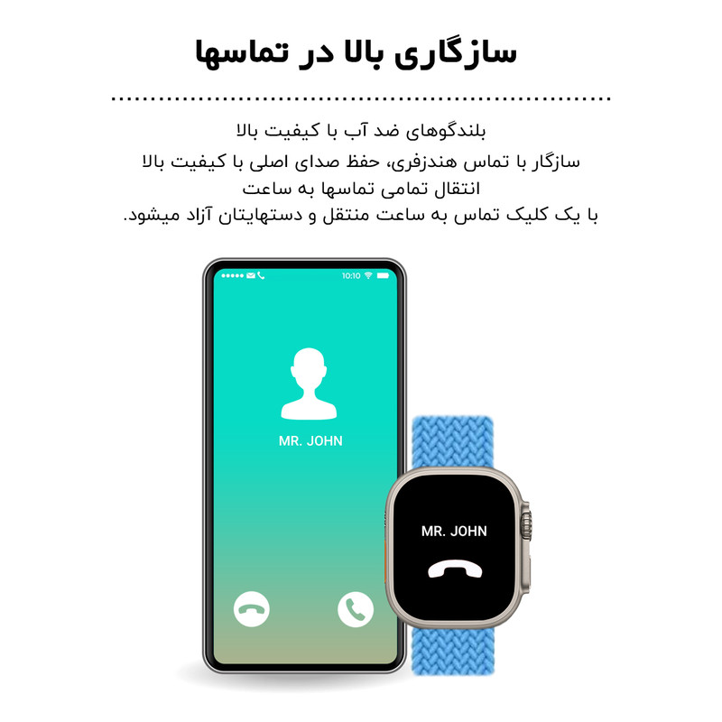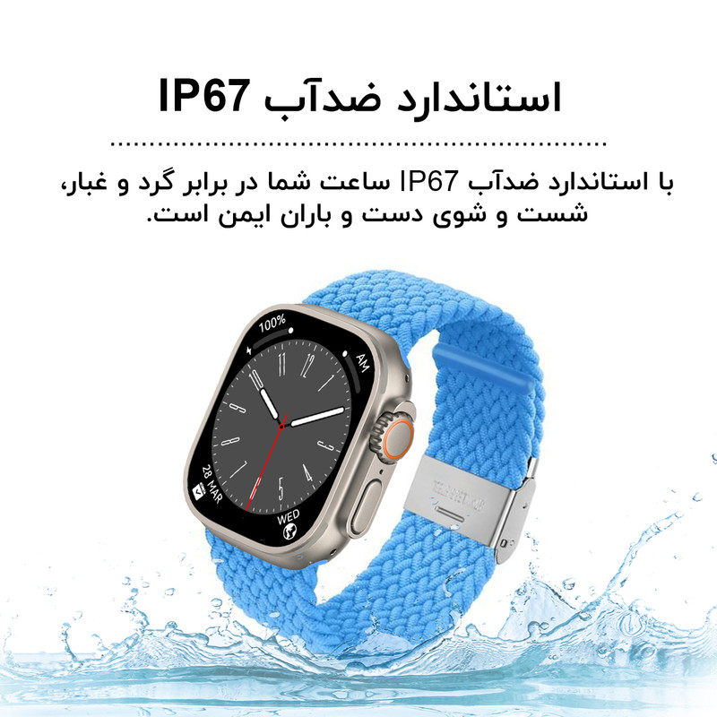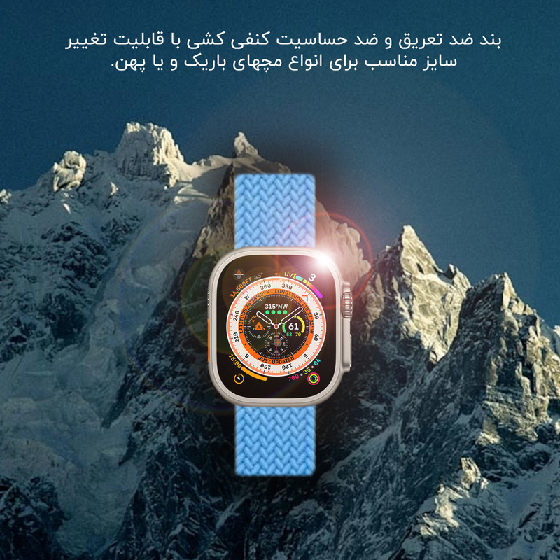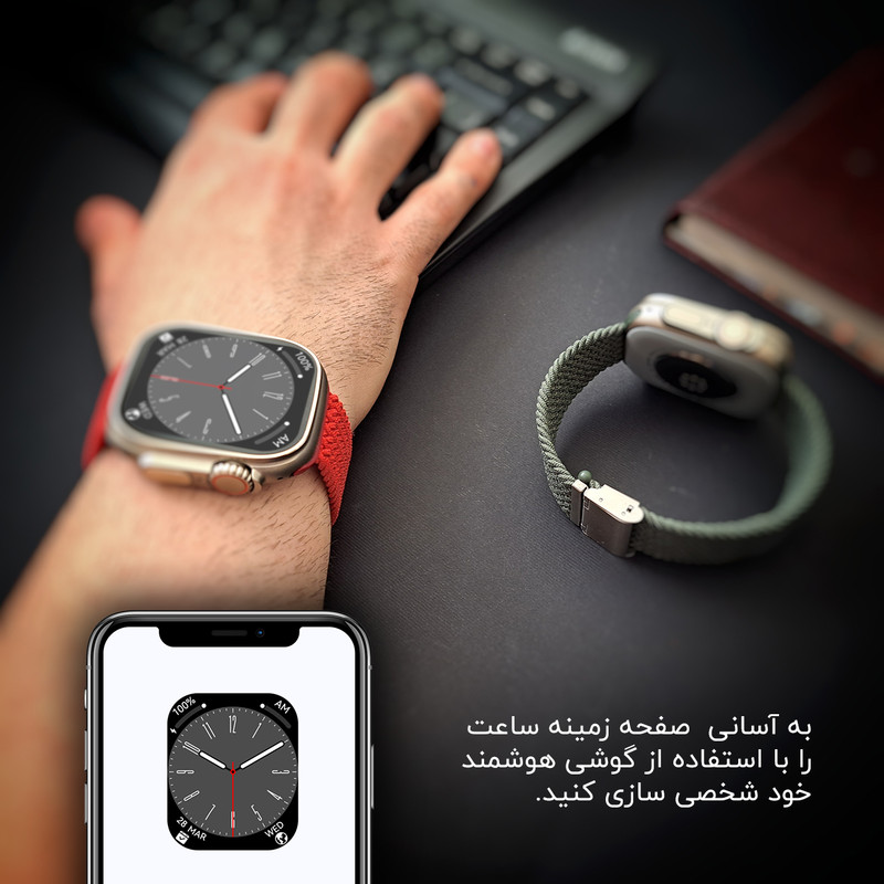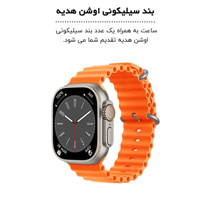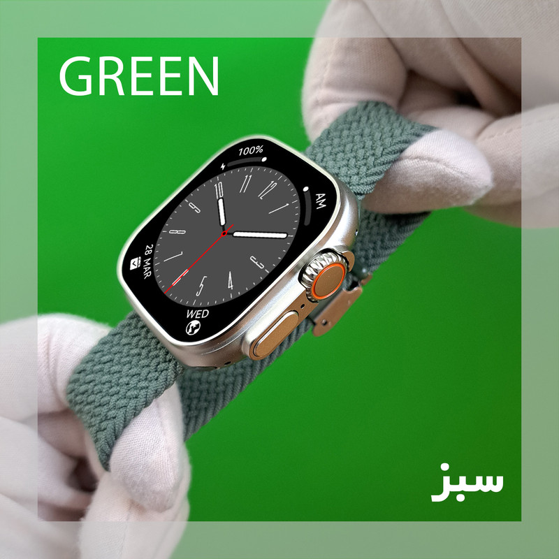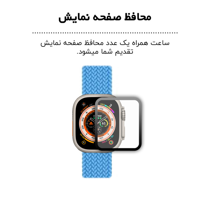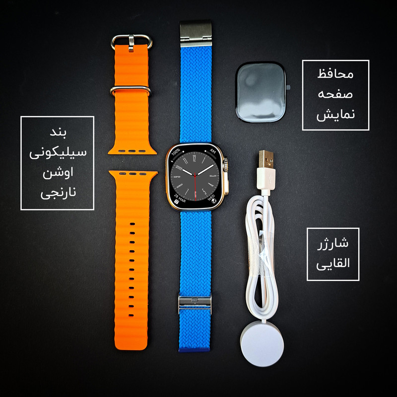 اقلام همراه : یک عدد بند کنفی کشی - یک عدد بند سیلیکونی اوشن - محافظ صفحه نمایش - شارژر ساعت هوشمند و راهنمای نصب نرم افزار به صورت فارسی