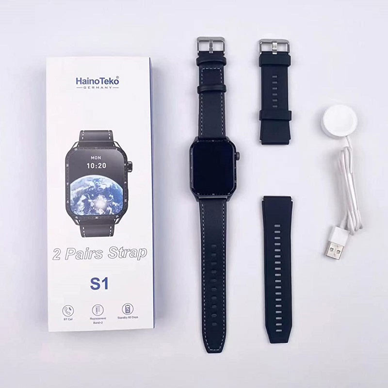 از جمله مهمترین ویژگیهای ساعت هوشمند هاینو تکو مدل S1، میتوان به طراحی متفاوت آن نسبت به بقیه محصولات موجود در بازار اشاره کرد. در جعبه این محصول میتوانید یک بند سیلیکونی و همچنین یک بند چرمی و یک شارژر مغناطیسی ببینید. از دیگر ویژگیهای بارز این اسمارت واچ میتوان به قابلیت اتصال بی سیم به دستگاههای با سیستم عامل اندروید و iOS اشاره کرد. ظاهر شیک و جذاب آن با صفحه نمایش باکیفیت، پردازنده قدرتمند و منوی کاملا روان ادغام شده است تا یکی از بهترین ساعتهایی باشد که در این رنج قیمتی دیدهاید.