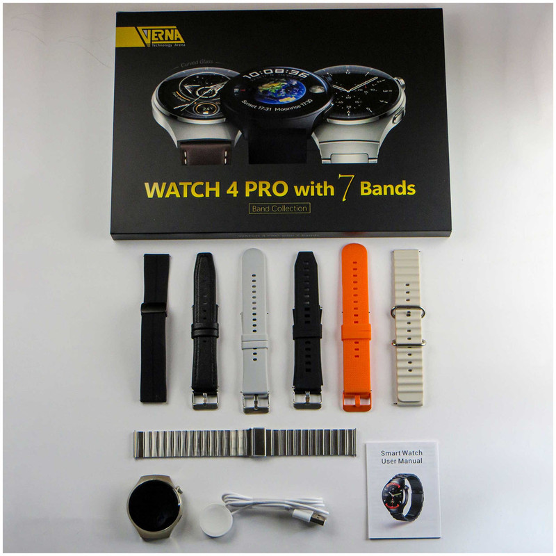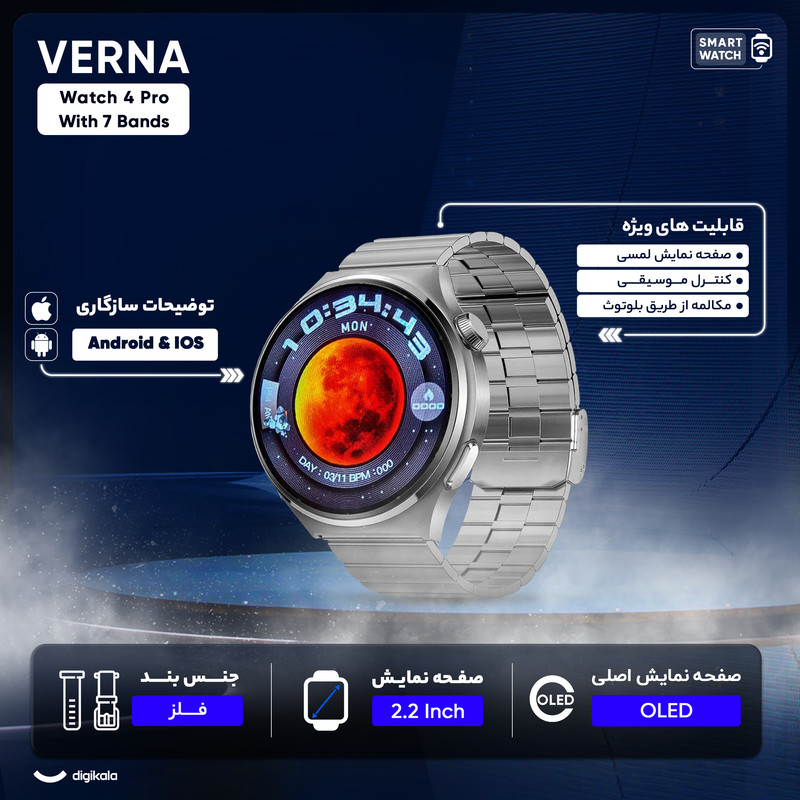 ساعت هوشمند ورنا مدل Watch 4 Pro With 7 Bands صفحه نمایش رنگی قابلیت مکالمه از طریق بلوتوث با بند فلزی