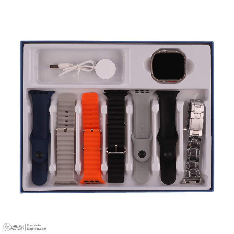 اقلام همراه : شارژر / دارای شش بند سیلیکونی و یک بند فلزی / دفترچه‌راهنما