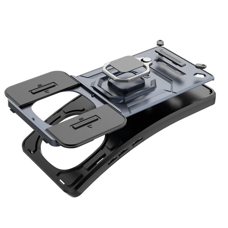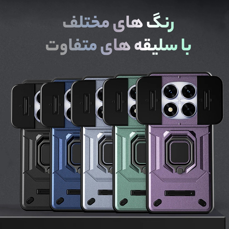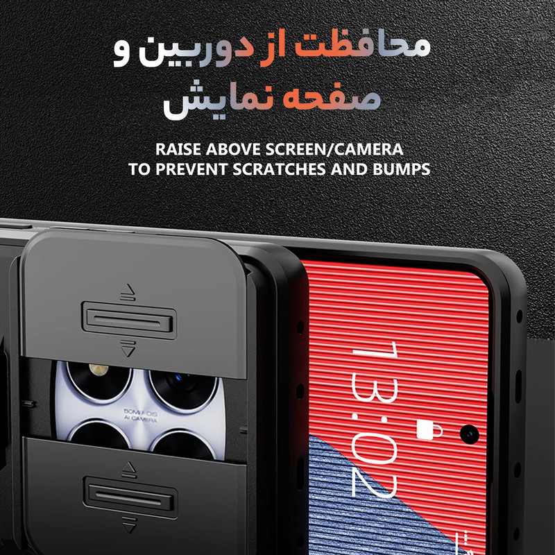 کاور جدید سامورایی سری Shockproof به گونه ای طراحی شده است که همه لبه های آن، با ارتفاع قابل توجهی گوشی را در بر گرفته و مانع از آسیب دیدن گوشی شیائومی Redmi Note 14 Pro 4G شود. گرچه این قاب با لبه های ژله ای هر چهار طرف گوشی را پوشانده است، اما به دلیل انعطاف پذیری لبه ها، کاربران برای نصب و جداسازی این قاب روی گوشی زحمتی نخواهند داشت و فشاری به گوشی وارد نمی شود. ژله ای بودن دور کاور باعث میشد در صورت سقوط گوشی روی زمین شوک ناشی از ضربه در همه زوایای کاور پخش شده و آسیبی به گوشی وارد نشود. یکی از مهمترین ویژگی های این قاب وجود حلقه نگهدارنده در پشت قاب است که شما میتوانید از حلقه ای که به این قاب متصل است در موارد گوناگون استفاده کنید. برای نمونه: با قرار دادن انگشت دورن حلقه، گوشی Xiaomi Redmi Note 14 Pro 4G کاملا در دست محکم می شود و احتمال افتادن گوشی از دست از بین میبرد. یا میتوانید با چرخاندن حلقه کاور را به حالت استند در بیاورید و به تماشای فیلم بپردازید. همچنین این حلقه نگهدارنده با داشتن حالت آهن ربایی می تواند به خوبی روی هولدرهای آهنربایی داخل خودرو بچسبد و دیگر نیازی به استفاده از برچسبهای آهن ربایی مجزا نخواهید داشت. این قاب دارای یک اسلاید کشویی است که به خوبی از دوربین محافظت می کند. همچنین در اطراف لنز های دوربین مقداری برجستگی وجود دارد که می تواند از دوربین گوشی هنگام ضربه محافظت کند.