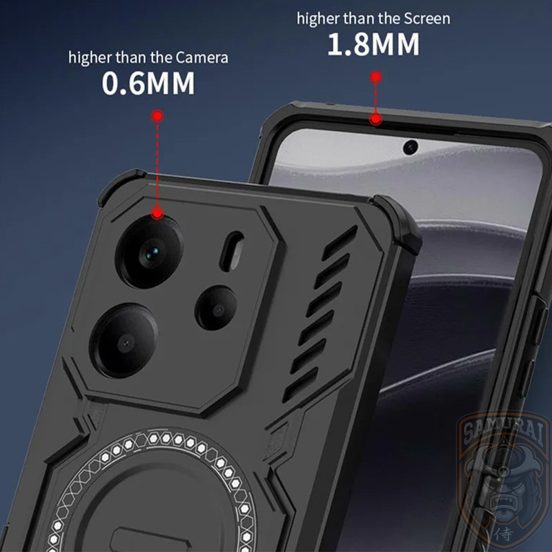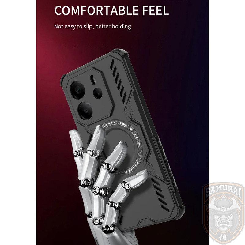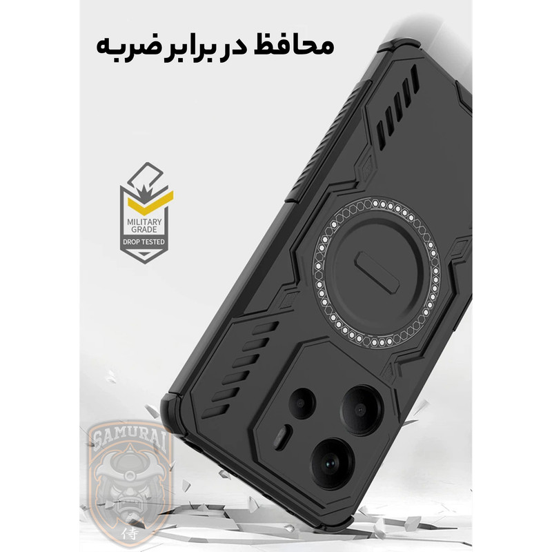 قاب گوشی شیائومی ردمی Note 14 4G مدل Hunter از برند سامورایی با طراحی دو لایه از جنس TPU نرم و پلیکربنات سخت (PC)، محافظتی کامل و حرفهای در برابر ضربه، خط و خش و سقوط فراهم میکند. این قاب دارای شیارهای تهویه هوا روی بدنه است که به گردش بهتر هوا و جلوگیری از داغ شدن گوشی کمک میکند. همچنین در چهار گوشه از فناوری ایربگ استفاده شده تا هنگام افتادن، ضربه را جذب کرده و آسیب را به حداقل برساند. قاب Hunter بهطور کامل از فناوری MagSafe پشتیبانی میکند و بدون نیاز به جداسازی، امکان استفاده از شارژر بیسیم و لوازم جانبی را فراهم میسازد. طراحی ارگونومیک، ضدلغزش و برش دقیق برای دسترسی راحت به دکمهها و پورتها، این قاب را به گزینهای عالی برای محافظت از Xiaomi Redmi Note 14 4G تبدیل کرده است.