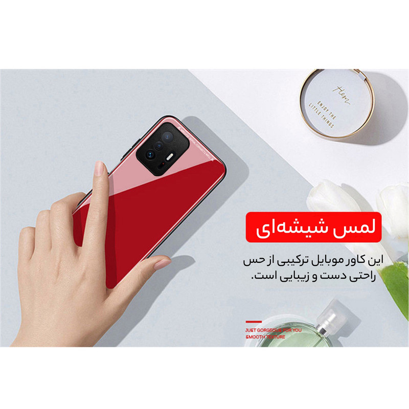 ویژگی ای که این کاور را متمایز می کند جنس شیشه ای و آینه مانند پشت آن است که می تواند جذابیت گوشی Xiaomi 11T Pro / 11T شما را دو چندان کند. شیشه فشرده شده که قسمت بیرونی قاب را تشکیل می دهد جنس بسیار با کیفیتی دارد و لمس آن تضمین کننده این امر است. همچنین شیشه پشت کاور مقاومت بالایی در برابر خط و خش دارد و به سختی می توان بر روی آن خراش ایجاد کرد. بامپر سیلیکونی دور کاور نیز روی دکمه ها را پوشانده که علاوه بر محافظت از دکمه ها استفاده از آن ها را راحت تر می کند.