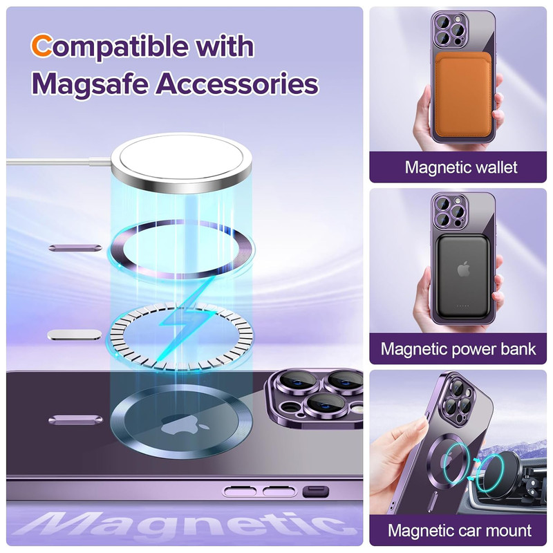 تجربه شارژ اصلی: قاب Clear Magsafe ، آهنربای قوی داخلی و توانایی جذب قوی انرژی باعث میشود شارژ سریعتر و پایدارتر شود. علاوه بر این، طراحی حلقه مغناطیسی تعبیه شده تضمین می کند که شل نمی شود و نمی افتد. این کیس با تمامی لوازم جانبی Mag-Safe (شارژر، کیف پول چرمی، باتری خارجی، نگهدارنده ماشین مغناطیسی و غیره) سازگار است.