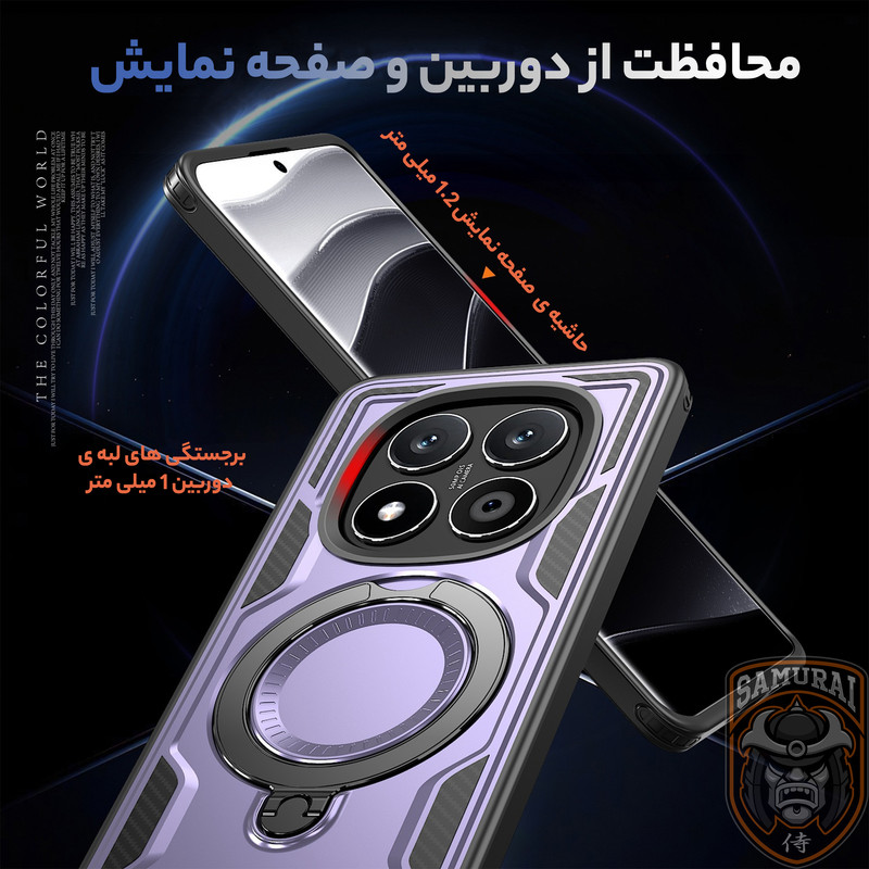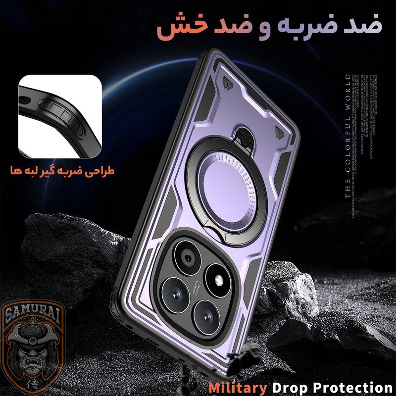 قاب شیائومی Redmi Note 14 Pro 5G / Redmi Note 14 Pro Plus مدل Standra از برند سامورایی یک گزینه حرفهای، مقاوم و شیک برای محافظت از گوشی شماست. این قاب با طراحی مدرن و چندکاره، دارای حلقه مغناطیسی N52 قوی، پایه چرخان 360 درجه، استند تاشو و محافظت نظامی در برابر ضربه است. تقویتشده با ایربگ چهارگوشه، قاب شیائومی Redmi Note 14 Pro 5G / Redmi Note 14 Pro Plus محافظت حداکثری در برابر افتادن و ضربه را تضمین میکند. با پشتیبانی از انواع لوازم جانبی مغناطیسی و قابلیت ایستادن در حالت عمودی یا افقی، استفاده از گوشی برای مطالعه، تماشا فیلم یا تماس تصویری را بسیار راحتتر میکند.اگر بهدنبال یک قاب مقاوم، کاربردی هستید، این گزینه برای شیائومی Redmi Note 14 Pro 5G / Redmi Note 14 Pro Plus بهترین انتخاب است.