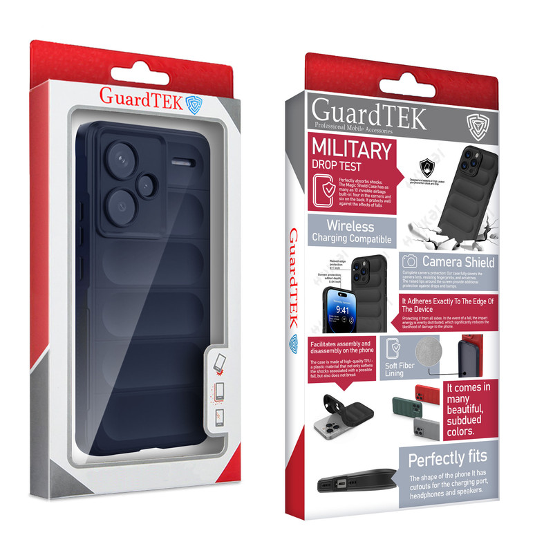 کاور گاردتک از سیلیکون مقاومی ساخته شده است که برای آنکه روی گوشی به راحتی نصب شود دورتادور آن نرم ساخته شده است. دوام و مقاومت بالای قاب محافظ باعث شده کاربران بتوانند با اطمینان خاطر از آن استفاده کنند. در نتیجه استفاده از آن، فشاری به گوشی هوشمند وارد نخواهد کرد.این قاب طراحی استانداردی دارد. به همین دلیل محل قرارگیری کلیدها، پورت ها و دوربین با برش های دقیقی باز شده است و کاربران برای دسترسی به این امکانات گوشی مشکلی نخواهند داشت. این کاور با پوشش کامل پشت و دورتادور گوشی مانع ایجاد خراشیدگی و ضربدیدگی آن می شود