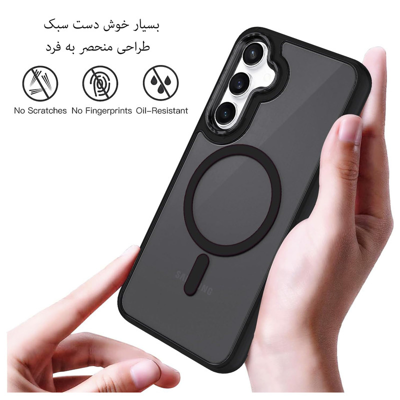 کاور مگ سیف Magsafe بادی قاب همانطور که از اسم آن مشخص است یک کاور مگنتی بسیار با کیفیت است که دارای لبه برای محافظت از صفحه گوشی و از لنز های گوشی میباشد. این کاور به نسبت کاور های مشابه از بهترین متریال اولیه ساخته شده پس در مرور زمان زرد نمیشود و مگنت های قوی استفاده شده در آن باعث میشود که لوازم جانبی که از طریق حالت آهن ربایی به آن میچسبد , محکم بماند. این کاور دارای تاییدیه استاندارد نظامی سقوط از ارتفاع ۳ متر نیز میباشد.