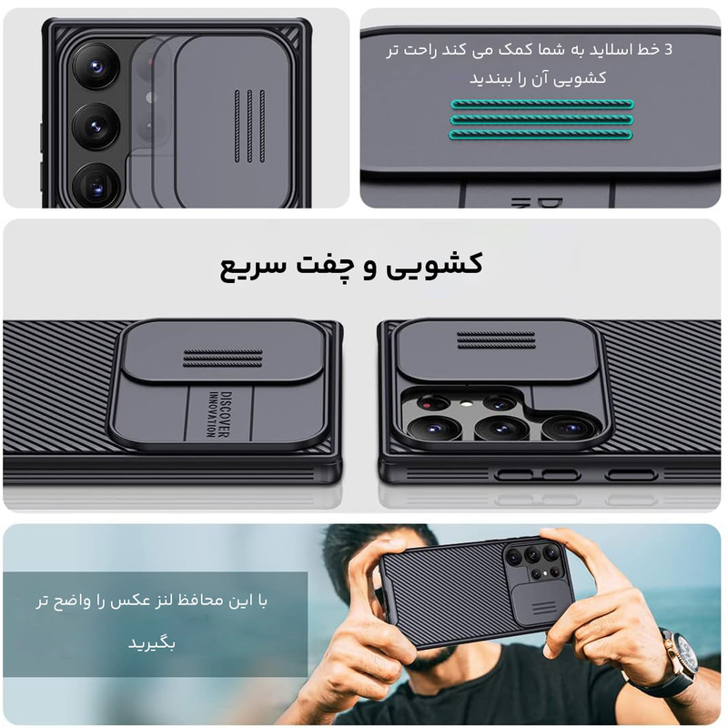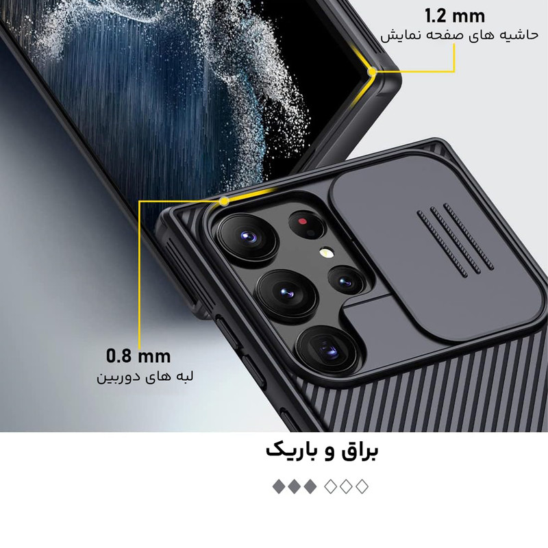 شرکت نیلکین بار دیگر با طراحی جدید اقدام به تولید قاب های کمشیلد پرو ( CamShield Pro ) گوشی موبایل سامسونگ Galaxy S23 Ultra کرده است .همانطور که میدانید قاب محافظ گوشی یکی از مهم ترین لوازم جانبی موبایل است که برای محافظت گوشی الزامیست؛مواد اولیه ی قاب CamShield Pro گوشی Samsung Galaxy S23 Ultra از دو جنس میباشد. این قاب محافظ یک تیکه، در قسمت پشت از مواد سخت مرغوب PC ساخته شده و در قسمت دور تا دور و لبه های قاب از مواد TPU که کمی انعطاف پذیر است ساخته شده است.و همچنین دارای محافظ لنز دوربین کشویی بسیار با کیفیتی هست؛برش های گارد کمشیلد پرو گوشی سامسونگ گلکسی اس 23 اولترا در قسمت پورت ها و دوربین با دقت بسیار بالایی انجام شده،همچنین پوششی از همان جنس منعطف TPU بر روی دکمه ها تعبیه شده که خود محافظی برای دکمه های گوشی کاربر است.؛طراحی قاب کمشیلد پرو گوشی Samsung Galaxy S23 Ultra نکته ی بسیار هائز اهمیتی دارد که این مدل گارد Nillkin را از بقیه ی ،قاب های نیلکین متمایز میکند آن هم درب کشویی است که در پشت گارد برای محافظت از لنز دوربین گوشی تعبیه شده است که بسیار مناسب برای کابرانیهست که از بابت خراشیدگی و ضربه به لنز دوربین موبایل سامسونگ گلکسی اس 23 اولترا نگرانی دارند با قاب محافظ نیلکین دیگر از این بابت نگرانی نخواهند داشت، درب کشویی لنز را ببندد تا به لنز گوشی ضربه یا خط و خشی وارد نشود و زمان استفاده از دوربین درب کشویی را کنار میزند.حتی میتوان گفت موقعی که محافظ لنز دوربین بسته است اگر خودتان هم بخواهید نمیتوانید ضربه ای دوربین وارد کنید. موضوع دیگری که این گارد CamShield Pro گوشی سامسونگ گلکسی اس 23 اولترا در طراحی دارد ،وجود شیار هایی در دو طرف قاب است که به دلیل برجستگی این شیارها ،گوشی از دست کاربر لیز نمیخورد و این طراحی در قسمت پشت قاب محافظ کمشیلد پرو گوشی Samsung Galaxy S23 Ultra نیز هست. مشخصات شکل ظاهری، این گارد را به گونه ایی ساخته که کاربر با در دست گرفتن گوشی با این قاب احساس خوشایندی بدست می آورد زیرا این طراحی بسیار زیبا و خیره کننده و موجود در رنگای جذاب و مختلف باعث شده کاربر به راحتی بتواند گوشی را با تیپ مورد علاقه خود ست کند.