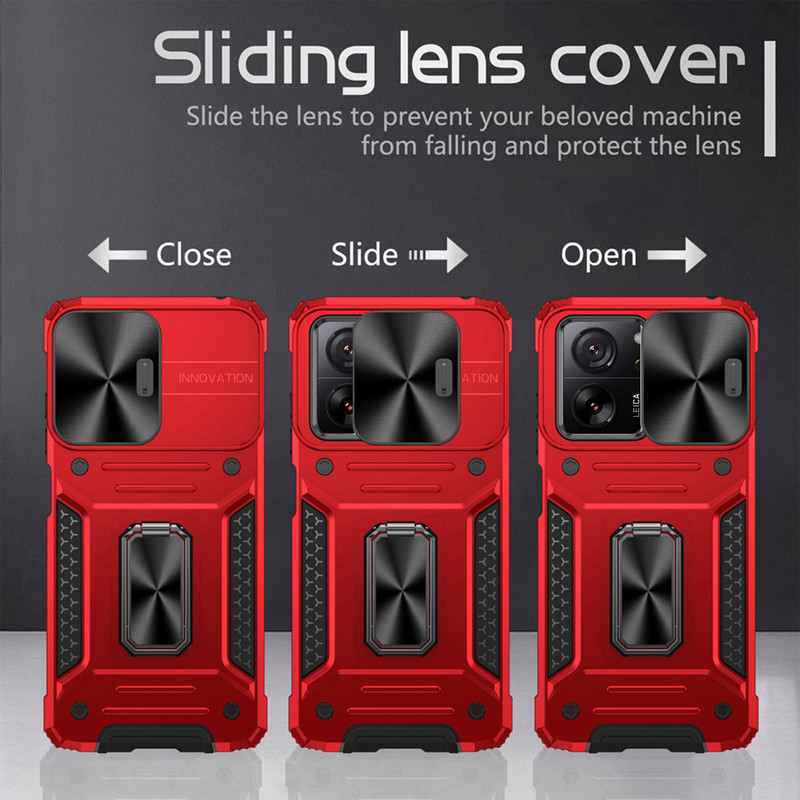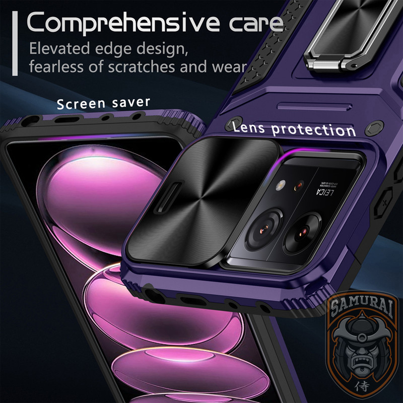 کاور جدید سامورایی سری CamShield Armor به گونه ای طراحی شده است که همه لبه های آن، با ارتفاع قابل توجهی گوشی را در بر گرفته و مانع از آسیب دیدن گوشی Xiaomi 13T Pro / 13T شود. گرچه این قاب با لبه های ژله ای هر چهار طرف گوشی را پوشانده است، اما به دلیل انعطاف پذیری لبه ها، کاربران برای نصب و جداسازی این قاب روی گوشی زحمتی نخواهند داشت و فشاری به گوشی وارد نمی شود. ژله ای بودن دور کاور باعث میشد در صورت سقوط گوشی روی زمین شوک ناشی از ضربه در همه زوایای کاور پخش شده و آسیبی به گوشی وارد نشود. یکی از مهمترین ویژگی های این قاب وجود حلقه نگهدارنده در پشت قاب است که شما میتوانید از حلقه ای که به این قاب متصل است در موارد گوناگون استفاده کنید. برای نمونه: با قرار دادن انگشت دورن حلقه، گوشی شیائومی 9داشتن حالت آهن ربایی می تواند به خوبی روی هولدرهای آهنربایی داخل خودرو بچسبد و دیگر نیازی به استفاده از برچسبهای آهن ربایی مجزا نخواهید داشت. این قاب دارای یک اسلاید کشویی است که به خوبی از دوربین محافظت می کند. همچنین در اطراف لنز های دوربین مقداری برجستگی وجود دارد که می تواند از دوربین گوشی هنگام ضربه محافظت کند.