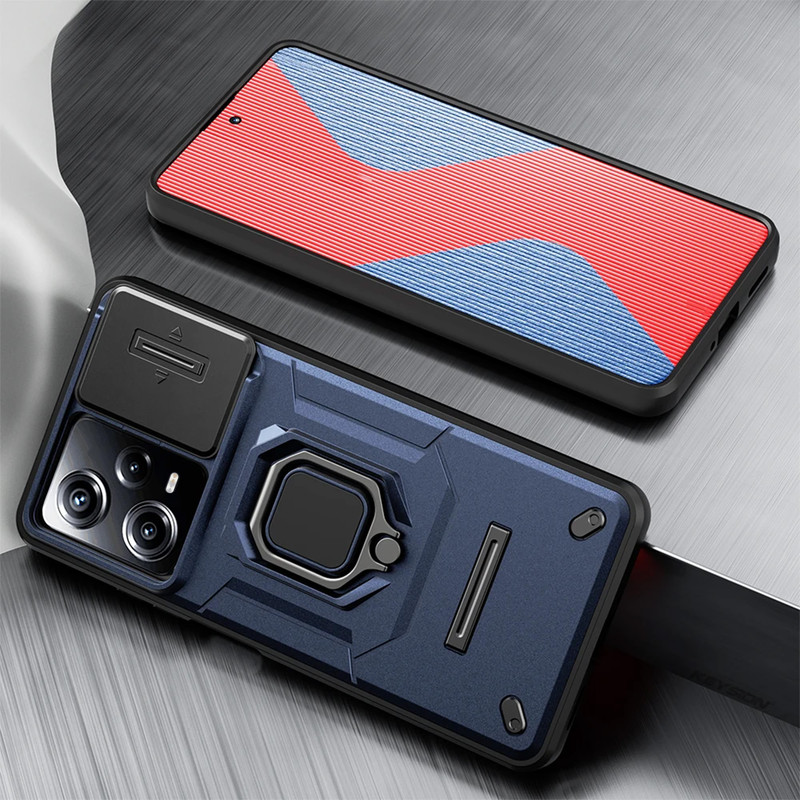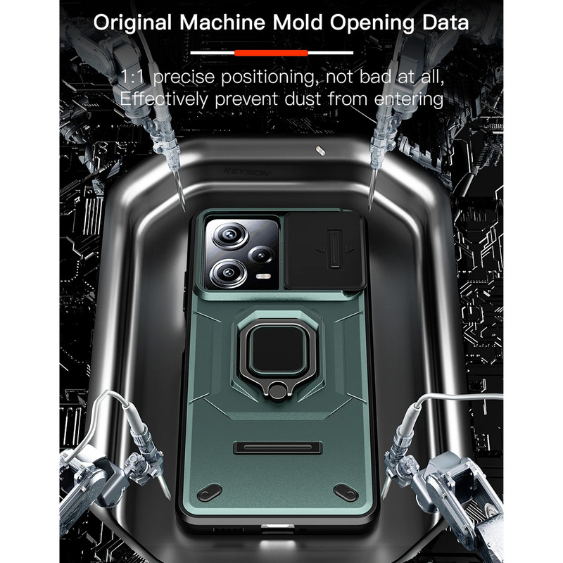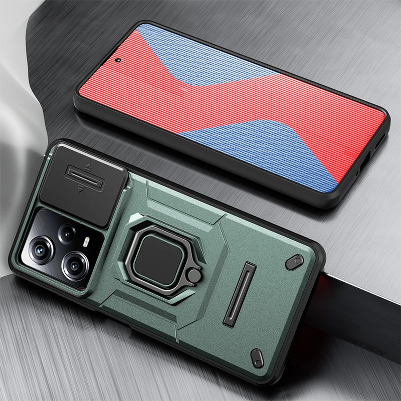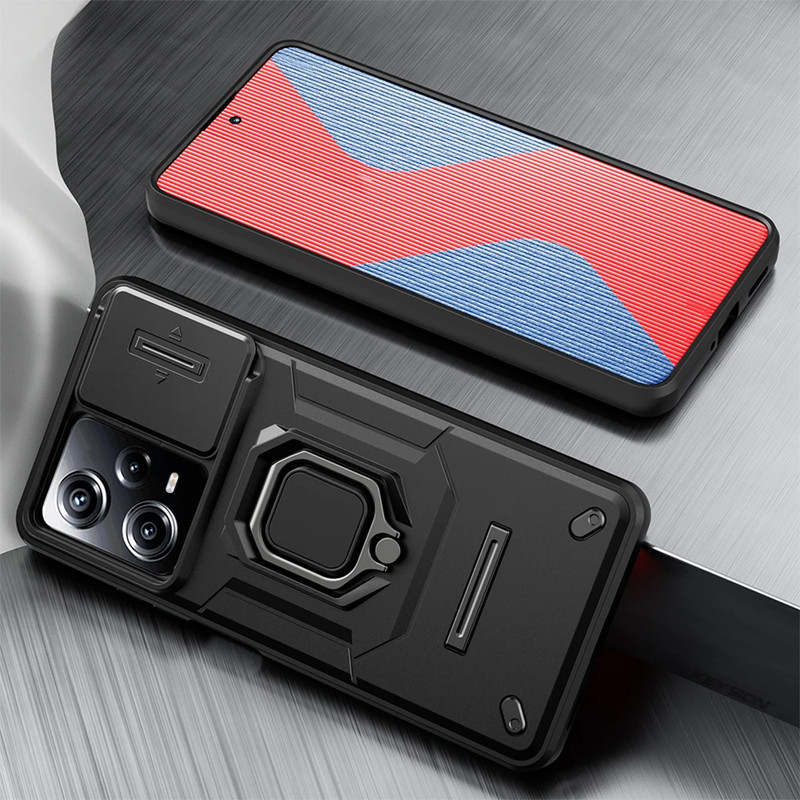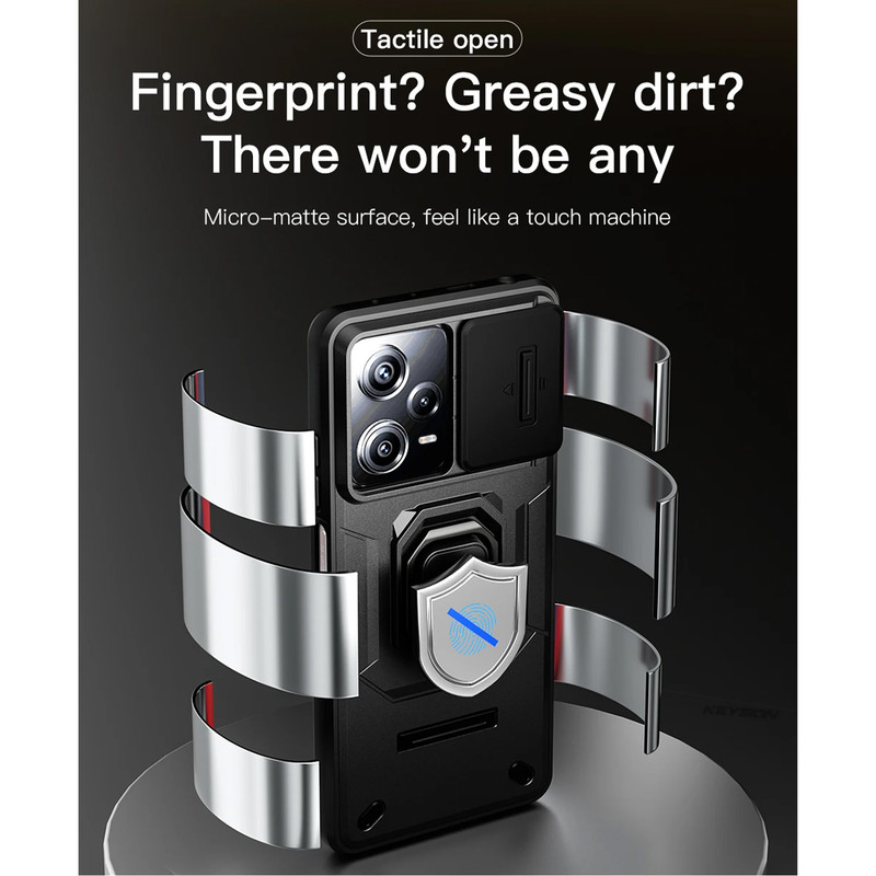 کاور جدید سامورایی سری Shockproof به گونه ای طراحی شده است که همه لبه های آن، با ارتفاع قابل توجهی گوشی را در بر گرفته و مانع از آسیب دیدن گوشی شیائومی Redmi Note 12 Pro 5G / Poco X5 Pro 5G شود. گرچه این قاب با لبه های ژله ای هر چهار طرف گوشی را پوشانده است، اما به دلیل انعطاف پذیری لبه ها، کاربران برای نصب و جداسازی این قاب روی گوشی زحمتی نخواهند داشت و فشاری به گوشی وارد نمی شود. ژله ای بودن دور کاور باعث میشد در صورت سقوط گوشی روی زمین شوک ناشی از ضربه در همه زوایای کاور پخش شده و آسیبی به گوشی وارد نشود. یکی از مهمترین ویژگی های این قاب وجود حلقه نگهدارنده در پشت قاب است که شما میتوانید از حلقه ای که به این قاب متصل است در موارد گوناگون استفاده کنید. برای نمونه: با قرار دادن انگشت دورن حلقه، گوشی شیائومی Redmi Note 12 Pro 5G / Poco X5 Pro 5G کاملا در دست محکم می شود و احتمال افتادن گوشی از دست از بین میبرد. یا میتوانید با چرخاندن حلقه کاور را به حالت استند در بیاورید و به تماشای فیلم بپردازید. همچنین این حلقه نگهدارنده با داشتن حالت آهن ربایی می تواند به خوبی روی هولدرهای آهنربایی داخل خودرو بچسبد و دیگر نیازی به استفاده از برچسبهای آهن ربایی مجزا نخواهید داشت. این قاب دارای یک اسلاید کشویی است که به خوبی از دوربین محافظت می کند. همچنین در اطراف لنز های دوربین مقداری برجستگی وجود دارد که می تواند از دوربین گوشی هنگام ضربه محافظت کند.
