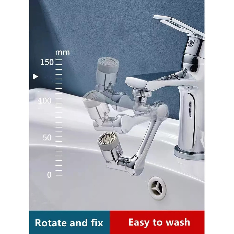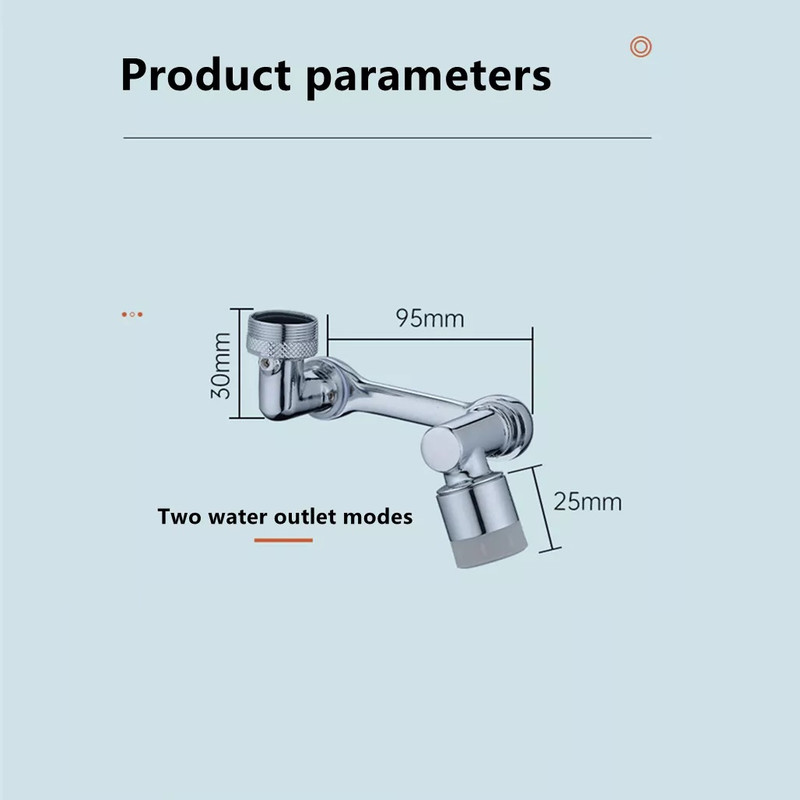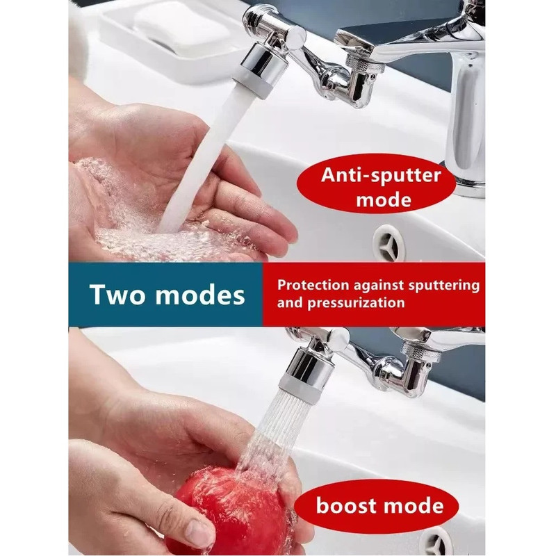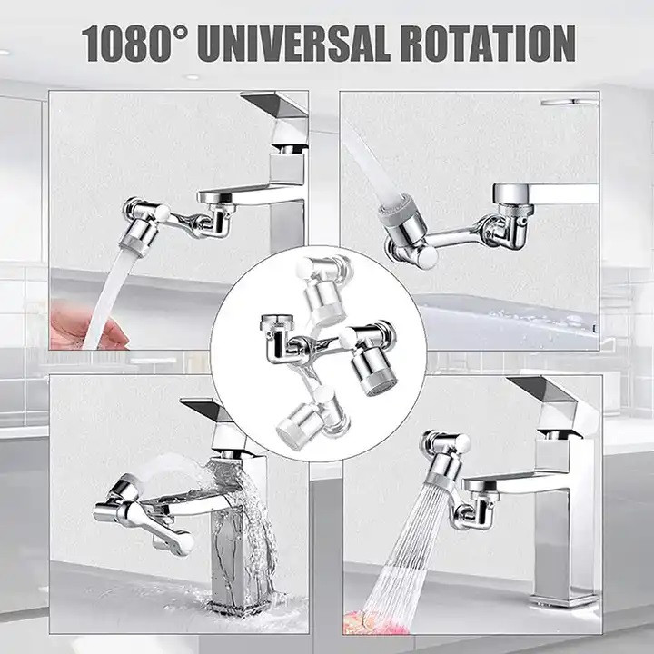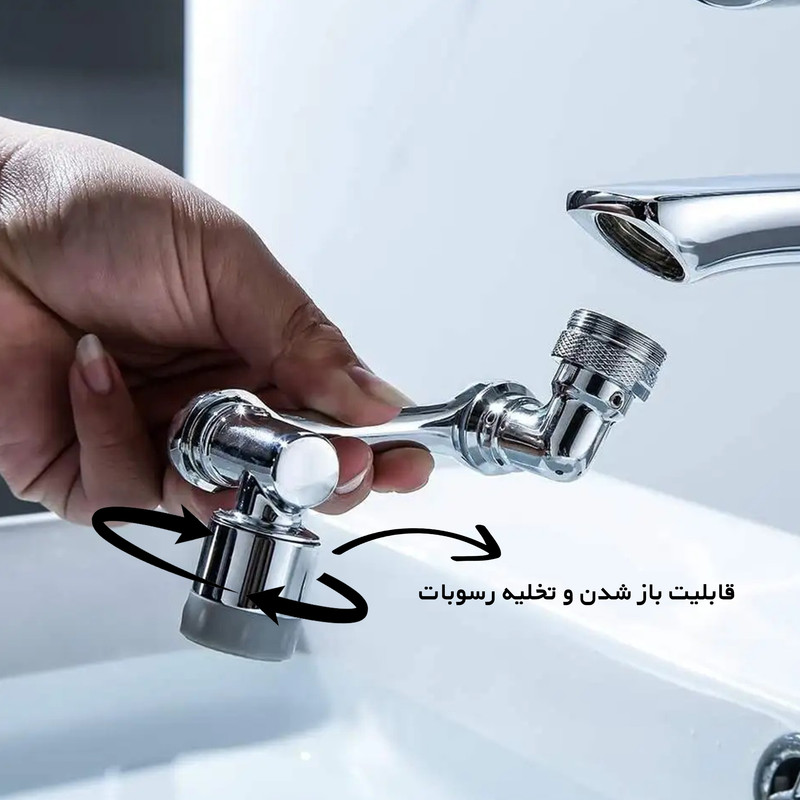 سرشیر آب گردان 1080 درجه آلوا با قابلیت چرخش وسیع 1080 درجه و مجهز به سه مفصل، قادر است بطور کامل در تمام جهات به صورت 360 درجه بچرخد، خم شود یا تا شود تا به هر نقطهای از سینک یا روشویی دسترسی پیدا کند و امکان شستشوی راحت را بدهد. این شیر آب، دارای دو حالت خروجی آب است؛ در حالت اول، آب با هوا مخلوط شده و با فشار نرم و حجم زیادی خارج میشود که برای شستشوی صورت و مو مناسب است و در حالت دوم، آب با فشار و سرعت زیادی خارج میشود که برای شستشوی وسایل نظیر ظروف و ... مناسب است.