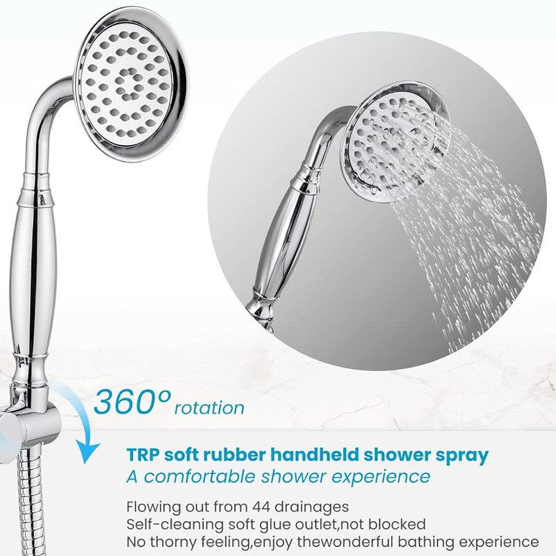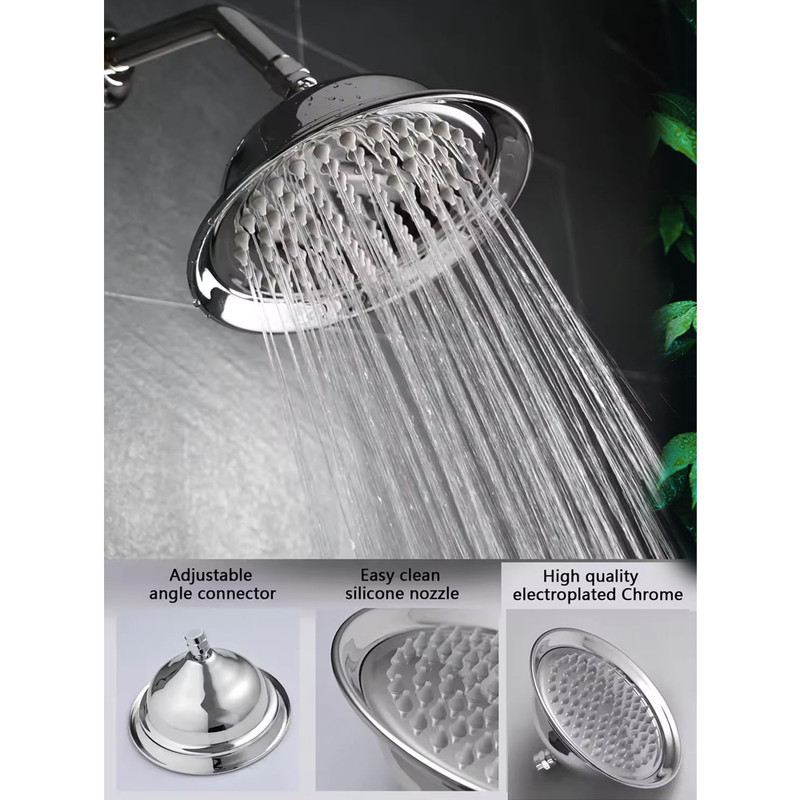مجهز به منافذ پلیمری که رسوب زدایی را راحت میکند، تعداد زیاد نازل اب جهت پخش مناسب آب، دارای جاصابونی، شلنگ استیل ریزبافت، قابلیت تنظیم ارتفاع گوشی، دارای پیچ و رول پلاک برای نصب