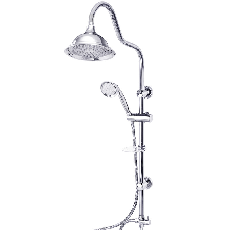 اقلام همراه : سه راه فلزی، شلنگ استیل ریز بافت، گوشی و سردوش شیپوری کروم، جاصابونی، پایه های با پوشش نیکل کروم، آسانسوری دکمه ای قابل تنظیم، شلنگ رابط دوش، لوله استیل، واشر های اب بندی و پیچ و رول پلاک جهت نصب.