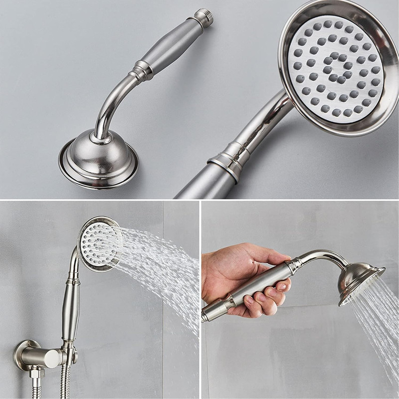 سایر توضیحات : مجهز به منافذ پلیمری که رسوب زدایی را راحت میکند، تعداد زیاد نازل اب جهت پخش مناسب آب، دارای جاصابونی، شلنگ استیل ریزبافت، قابلیت تنظیم ارتفاع گوشی، دارای پیچ و رول پلاک برای نصب