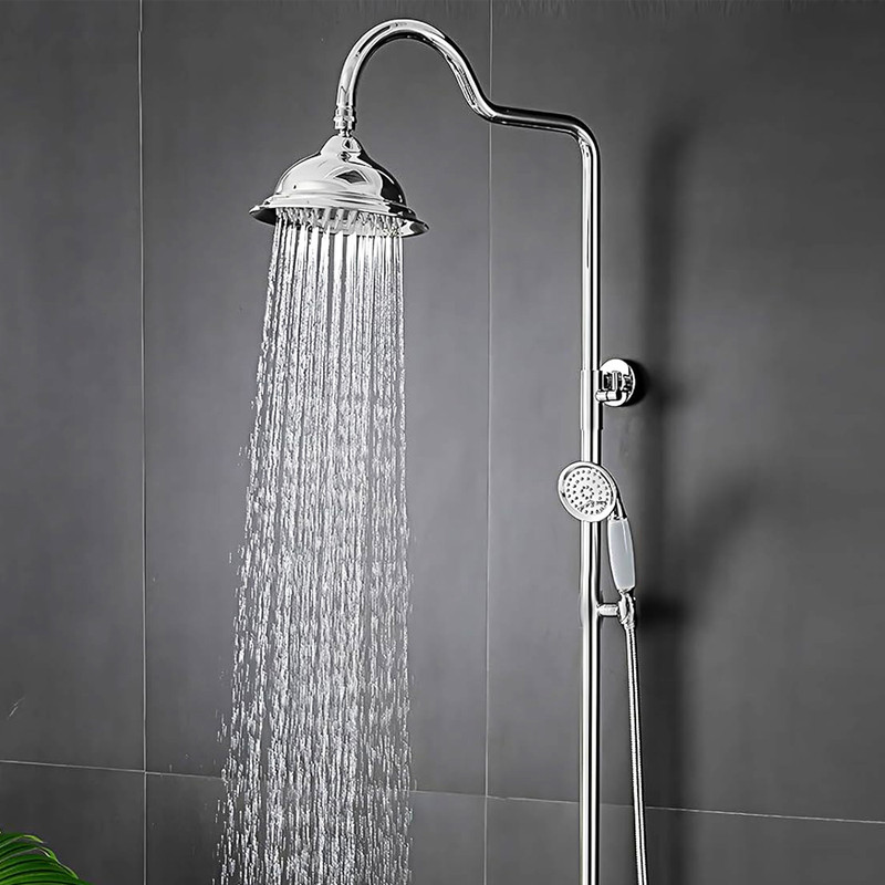 سه راه فلزی، شلنگ استیل ریز بافت، گوشی و سردوش شیپوری کروم، جاصابونی، پایه های با پوشش نیکل کروم، آسانسوری دکمه ای قابل تنظیم، شلنگ رابط دوش، لوله استیل، واشر های اب بندی و پیچ و رول پلاک جهت نصب.
