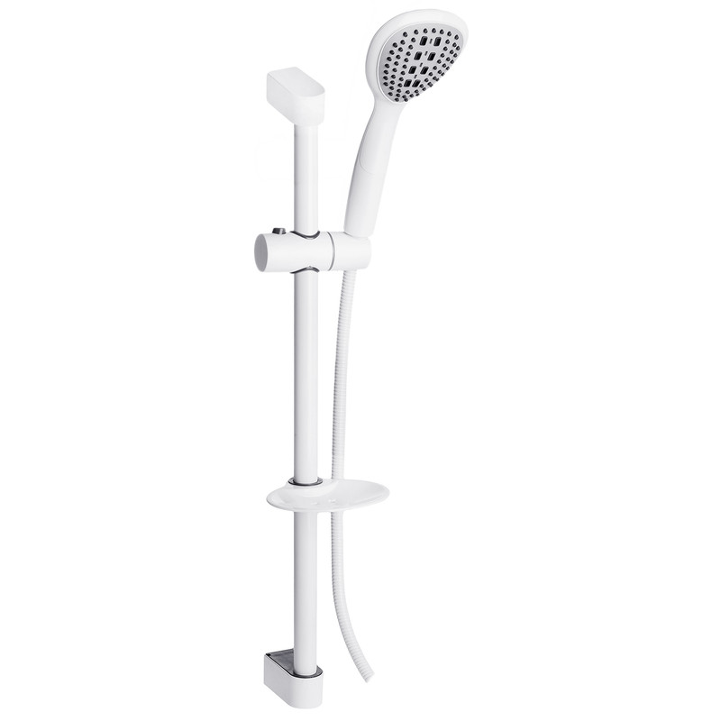 دارای جاصابونی، شلنگ استیل ریزبافت سفید، پایه های نگهدارنده،دارای گوشی با کیفیت و پر فشار، قابلیت تنظیم ارتفاع گوشی