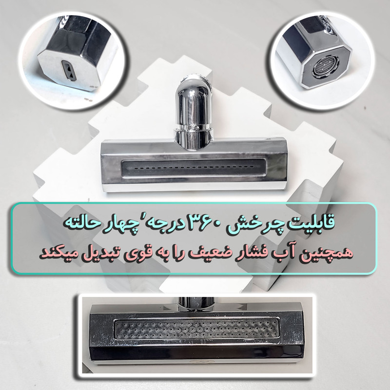 صرفهجویی در مصرف آب , آنتیباکتریال , علمک چرخان 360 درجه , افزایش فشار آب , ساختار ارگونومیک , فناوری صرفهجویی آب