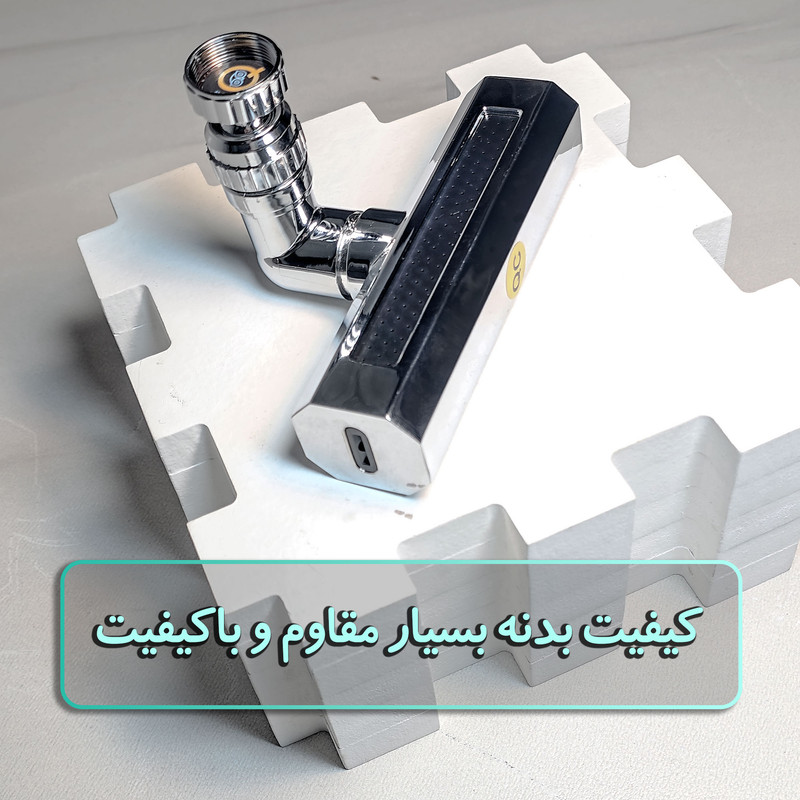 سایر توضیحات : جنس محصول از چند نوع آلیاژ ترکیبی ( ای بی اس - پلاستیک - پلیمر ) بسیار با کیفیت تولید شده تا در زمانی که آب فشار قوی است خراب نشود در کل این محصول برای همه مناسب است مخصوصا خانه هایی که آب با فشار خیلی ضعیف دارن ( چون آب را به فشار قوی تبدیل میکنه )