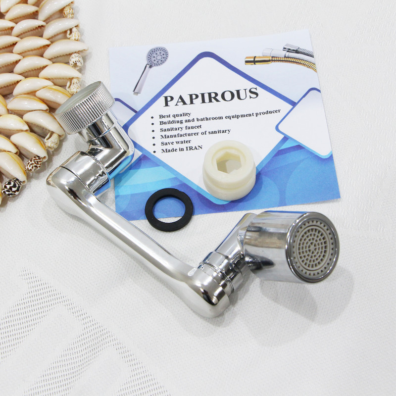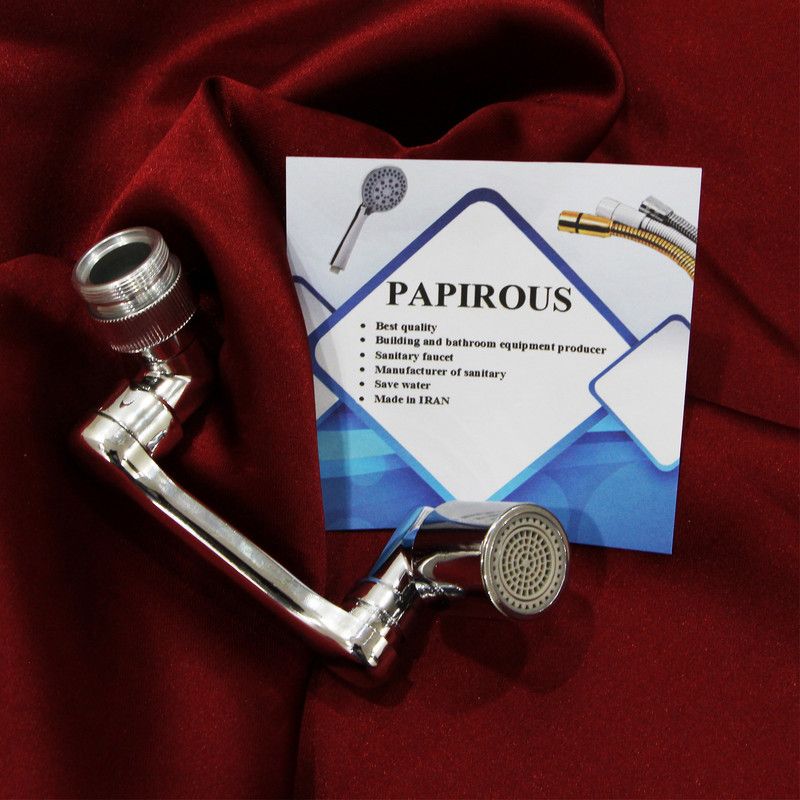 سرشیر گردان پاپیروس با قابلیت چرخش 180 درجه ( سه جهت چرخش کامل 360 درجه) این امکان را می دهد که براحتی علاوه بر بلند نمودن شیر آب در جهت های مختلف از آن استفاده کنید. در وهله ی اول این محصول برای شیر روشویی کاربرد دارد چرا که شیرهای روشویی کوتاه بوده و براحتی نمی توان بکمک آنها دست و صورت و حتی خود را سینک را شست، این محصول تمامی این قابلیت ها را برای شما فراهم می کند. هم چنین این محصول می تواند برای شیرآب های غیر متحرک شیر ظرفشویی نیز استفاده شود و بسیار کارآمد است. حتما این محصول را یکبار امتحان کنید.نکته: سایز قطر این سری شیر آب برای تمامی شیرهای روشویی و آشپزخانه رایج بازار ایران مناسب میباشد.