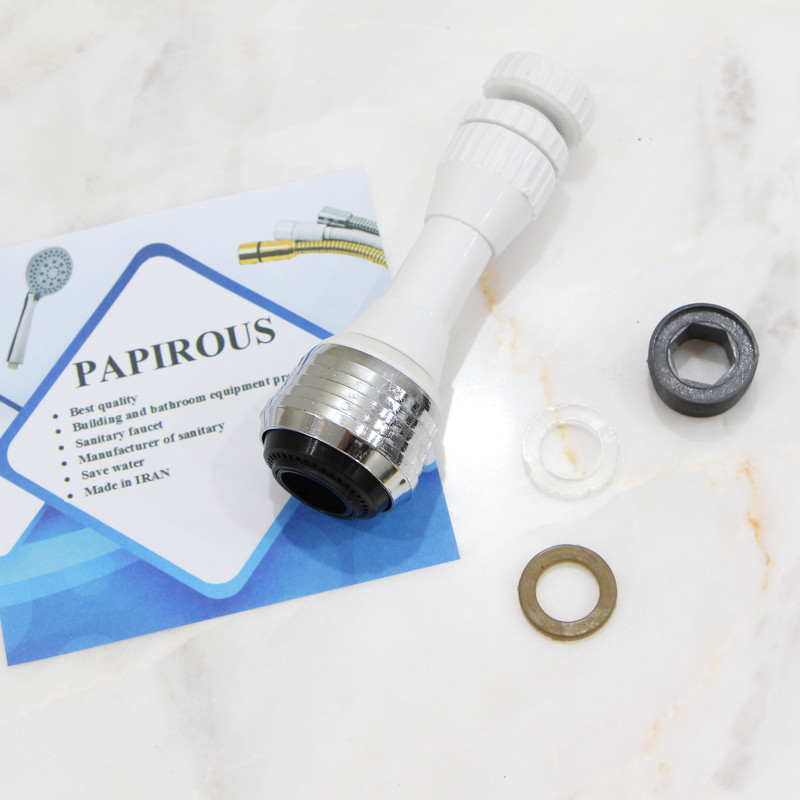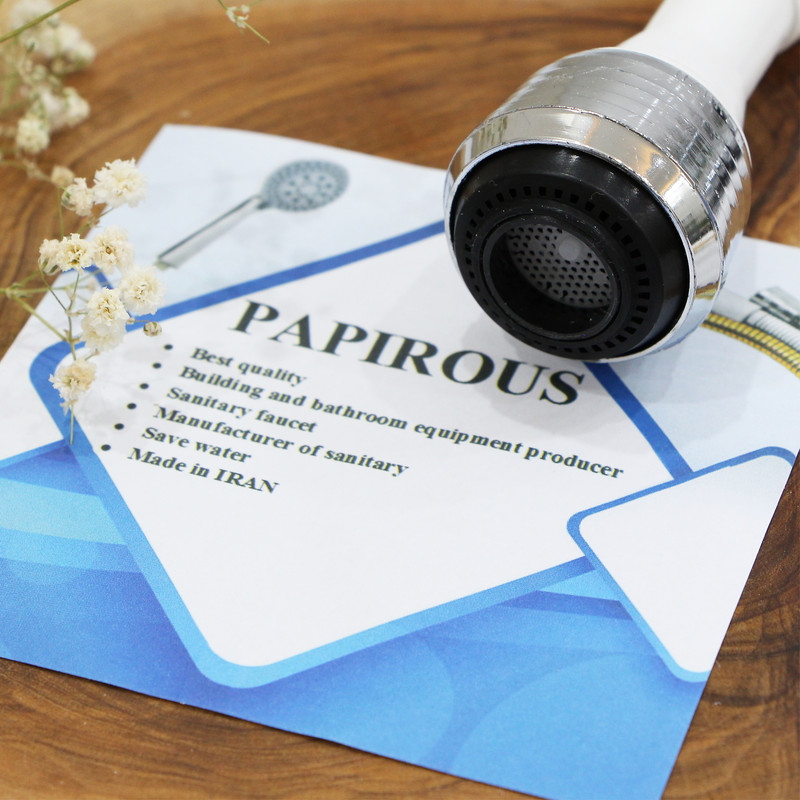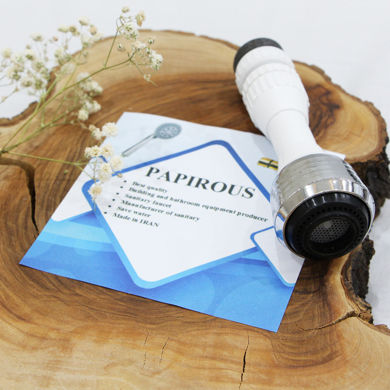 سرشیر آب پاپیروس مدل کاهنده مصرف آب اکو لایت با قابلیت چرخش وسیع و مجهز به حالت فشار شکن، قادر است در زوایایی بچرخد، تا به هر نقطهای از سینک یا روشویی دسترسی پیدا کند و امکان شستشوی راحت را بدهد. این سر شیر آب، با استفاده از ترکیبی از مواد باکیفیت و پلاستیک ABS، عمر طولانی و دوام بینظیری دارد. نکته: سایز قطر این سری شیر آب برای تمامی شیرهای روشویی و آشپزخانه رایج بازار ایران مناسب میباشد.