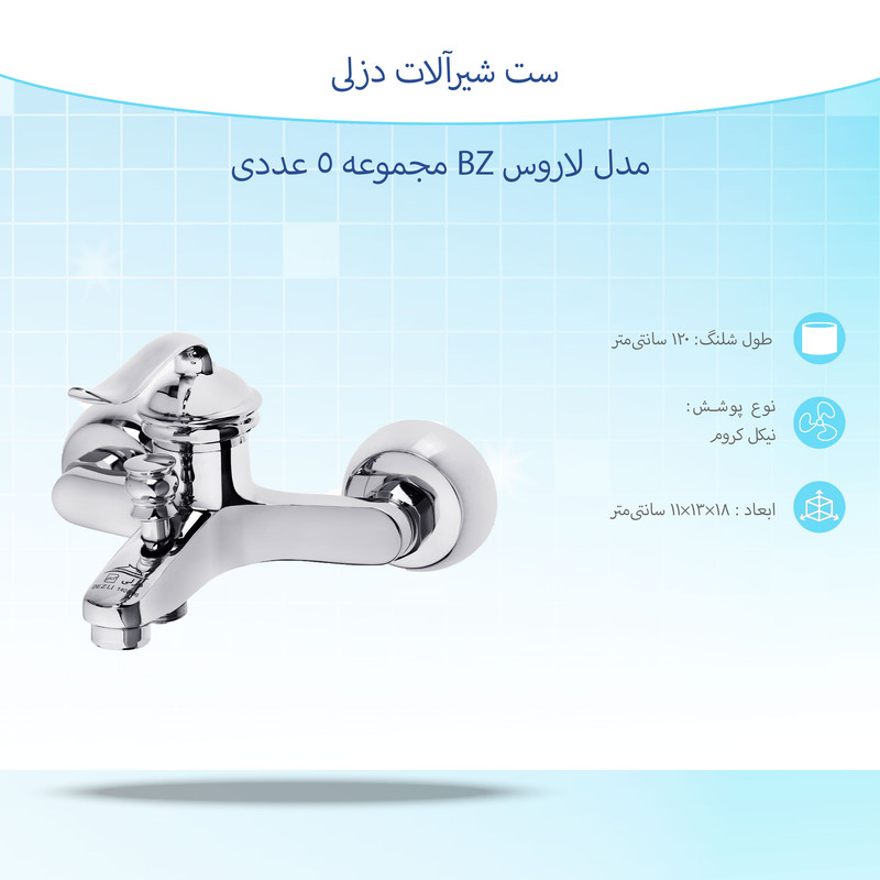 جنس تنهآلیاژ برنججنس دستهزاماکنوع پوششنیکل-کرومویژگیهای شیرآلاتاهرمی , دارای آبفشان , دارای شیلنگ , رنگ براقرنگاستیل