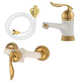 دارای نشان استاندارد * رنگ الکترو استاتیک کوره ای * پوشش طلایی پی وی دی * پرلاتور برنجی و ضد زنگ * شیر روشویی با ابعاد ۱۲x۵x۱۳وزن تقریبی ۰.5۰۰ کیلوگرم به همراه شلنگ اتصال به شیر پیسوال سایز ۳.۸ x شیر توالت با ابعاد ۱۰x۱۵x۱۸ وزن تقریبی ۰.6۰۰ کیلوگرم x