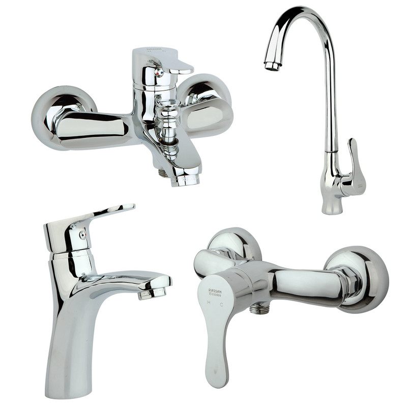 شیر ظرفشویی با ابعاد 37x27.5x6 سانتی متر - با وزن 3.500 کیلو گرم شیر روشویی با ابعاد 22.5x18x5.5 سانتی متر - با وزن 2.300 کیلو گرم شیر دوش با ابعاد 21x18x14 سانتی متر - با وزن 2.600 کیلو گرم شیر توالت با ابعاد 14x21x6 سانتی متر - با وزن 2.200 کیلو گرم