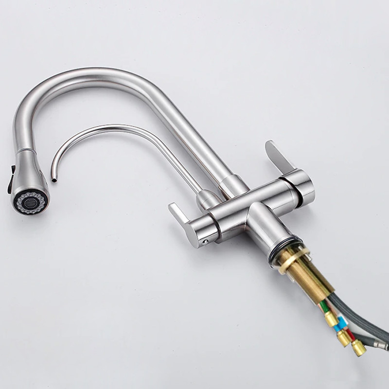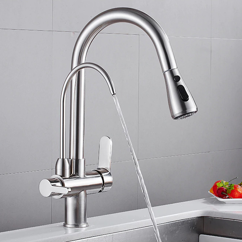 شیر آلات لوکس خارجی به لحاظ کارایی مشابه شیرآلات معمولی هستند و دارای انواع اهرمی، چرخشی، چشمی، هوشمند و .. می باشند. تفاوت مهم آنها با انواع قدیمی در کیفیت, رنگ و جنس روکش آنهاست که باعث می شود زیبایی خاص و منحصر بفرد داشته باشند. در واقع تنها کارایی و کیفیت شیرآلات نیست که امروزه مورد توجه قرار می گیرد، بلکه زیبایی آن نیز بسیار مهم است. چه بسا برای برخی از افراد نمای ظاهری مهمترین پارامتر انتخاب و خرید باشد. زیرا شیرآلات به همراه روشویی و کابینت جز لوازم دکوراتیو سرویس بهداشتی هستند که در نگاه اول به چشم می آیند.شیر آشپزخانه مدل لوکس تصفیه دار دارای خروجی مجزا جهت تصفیه و شیلنگ شاوری بیرون اورنده برای دسترسی به نقاط مختلف سینک و ظروف می باشد