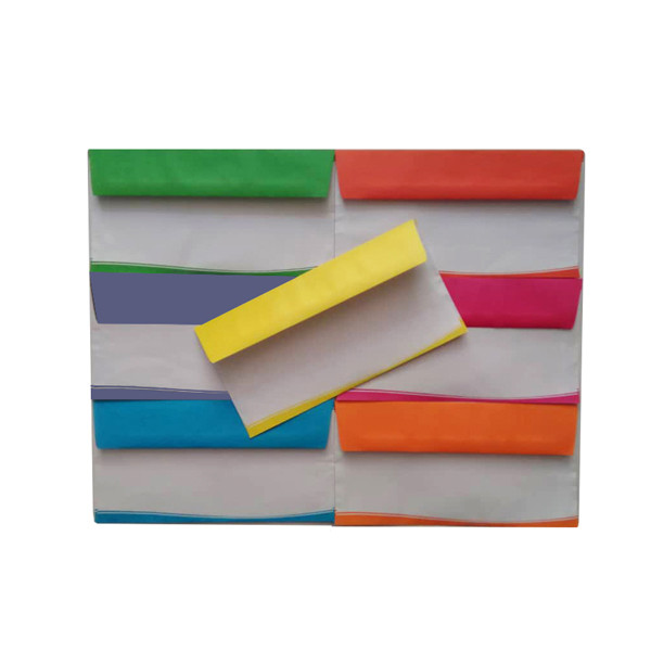 سایز پاکت 11x22 سانتیمتر دارای حاشیه رنگی در بالا وپایین و پشت و رو دارای 7 رنگ متنوع در حاشیه هر بسته شامل 50 عدد پاکت یک رنگ جنس پاکت از کاغذ 70 گرم است.
