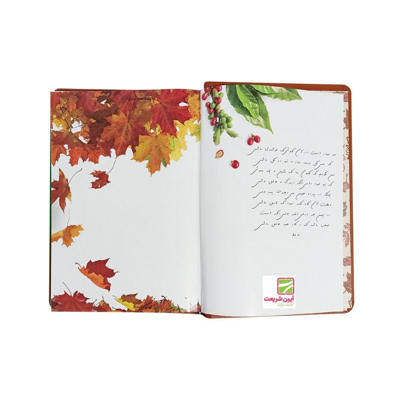 سالنامه سال 1404 انتشارات ایین شریعت مدل کلاسوری بصورت روز شمار جمعه جدا می باشد .کاغذ مصرفی 70گرم خارجی با چاپ رنگی می باشد .جلد بکار رفته چرم مرغوب با صحافی ته دوخت و بسیار مقاوم می باشد