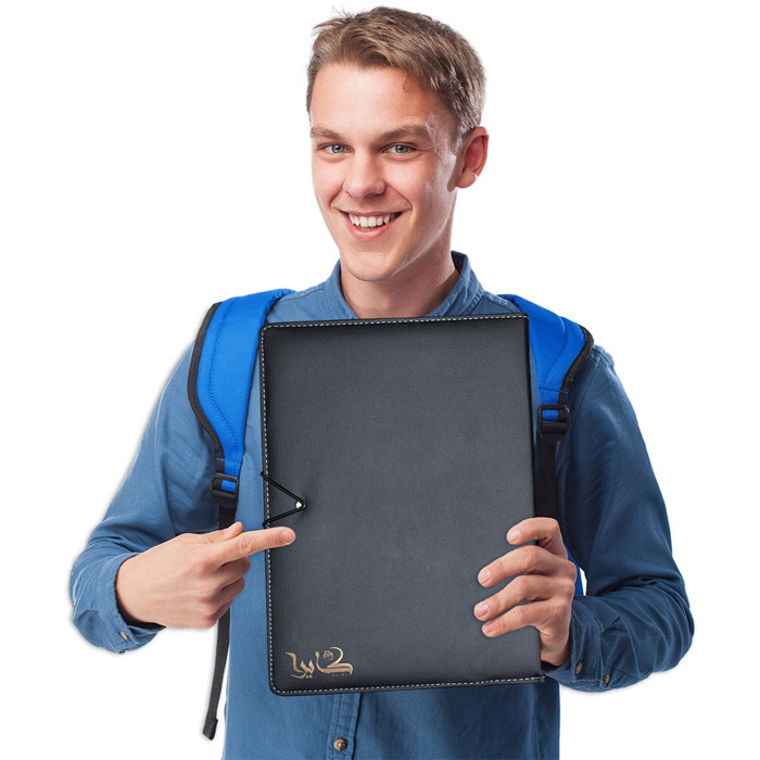 کلاسور A4 چرم کایرا بدلیل کاربردی بودن در بین برگزار کنندگان سمینار، کارمندان، استادان، دانشجویان و دانش آموزان محبوب بوده و برای رفع نیاز آنها مناسب است.این محصول دارای جای کاغذ یادداشت سایز A4 ، جای خودکار، یک محفظه برای کارت ویزیت یا کارت بانکی و یک محفظه کاغذ یادداشت میباشد.جنس کلاسور کایرا از چرم مصنوعی با کیفیت می باشد و نحوه ی باز و بسته شدن آن با کش است و در رنگ های قرمز، آبی، سبز و زرد به بازار عرضه شده است.