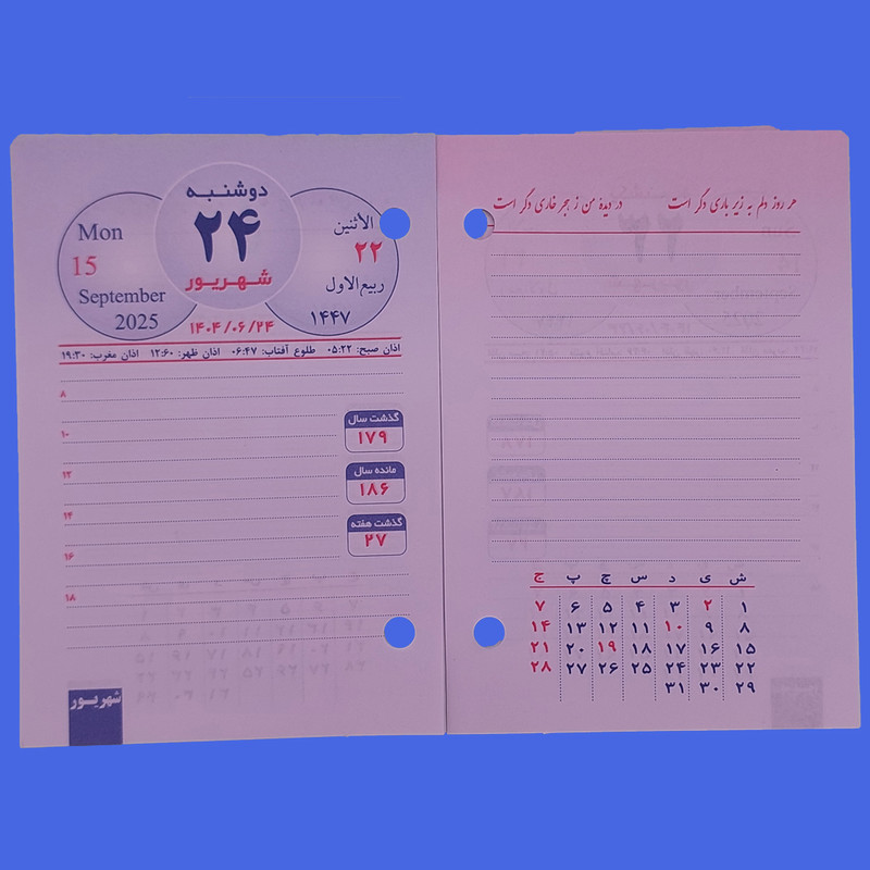 تقویم رومیزی سال 1404 مدل پانچ