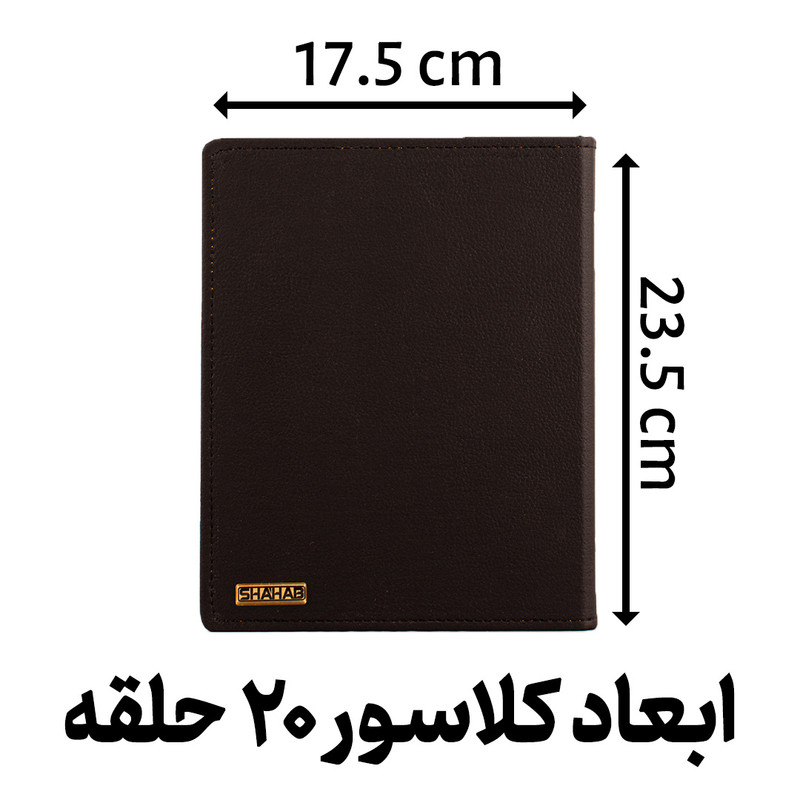 کلاسور 20 حلقه تهیه شده از جنس مقوای ضخیم صنعتی با روکش چرم مصنوعی باکیفیت که علاوه بر دوام بالا دارای بافت و ترکیب رنگ زیبایی است که مناسب برای استفادههای متوالی میباشد. جنس قفل کلاسور از جنس فلز میباشد؛ که برای باز و بسته شدنهای متوالی جهت چیدمان و جابجایی کاغذها دارای مقاومت بالاتری نسبت به قفل پلاستیکی می باشد و ظرفیت قرار دادن 160 برگ کاغذ در آن وجود دارد. از ویژگی های این محصول قابل استفاده بودن کاغذ های 20 حلقه ی موجود در بازار برای همه مدل های این کلاسور می باشد. این کلاسور به همراه 80 برگ کاغذ و یک عدد دیوایدر ارسال می شود.