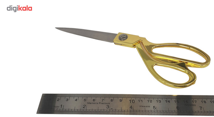قیچه دسته فلزی 10/5 اینچ با تیغه ی قوی مناسب برش انواع پارچه های نازک و ضخیم می باشد. این قیچی بیشتر توسط خیاط ها انتخاب می شود امّا رنگ طلایی زیبای آن باعث شده طرفداران زیادی بین نوعروسان برای تهیه ی جعبه ی خیاطی عروس داشته باشد. همچنین براق و چشم گیر بودن رنگ آن، مانع از گم شدن آن در خانه و لابه لای وسایل می شود و این قیچی را به انتخابی مناسب برای خانم های خانه دار هم تبدیل کرده است. اگر یک قیچی دسته فلزی با قیمت متوسط میخواهید، این قیچی انتخاب مناسبی است.