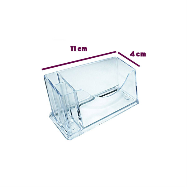 امروزه در هر مکان تجاری از اداره جات و شرکت ها گرفته تا حتی مغازه های کوچک ، سالن های آرایش ، آموزشگاه ها و ... کارت ویزیت برای معرفی کسب و کار ، موجودست. بدیهی است که بهتر است کارتهای ویزیت مکان مشخص و مرتبی داشته باشند و باید به صورت دستهبندی شده در معرض دید عموم باشند تا مشتری بتواند به راحتی آنها را دیده و از روی میز بردارد.جای کارت ویزیت طلقی گزینه ای مناسب ، زیبا و شکیل است. میتوانید از 2 عدد جا قلمی که در آن در نظر گرفته شده برای قرار دادن قلم های خود استفاده کنید.