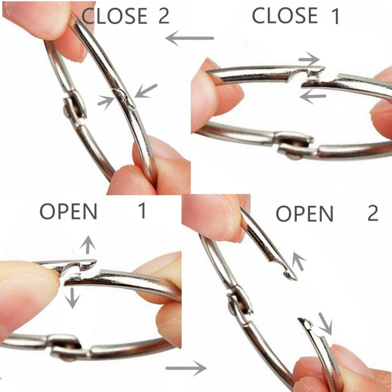 حلقه اتصال فلزی قفلدار ، جهت مصارف متعددی قابل استفاده میباشد . مصارفی چون اتصال برگه های کاغذی به یکدیگر ، صحافی اوراق ، نظم دهی کلید ها ، آویز اشیا به البسه و کوله پشتی و ..... .این حلقه از دو فک متحرک ( باز شونده ) تشکیل گردیده که از طریق لولای میانی آن از یکدیگر باز شده و از طریق بست ، به یکدیگر متصل میگردد که امکان اتصال چندین برگه یا هر شیئی را میسر میسازد .این حلقه در چند رنگ تولید و به بازار عرضه گردیده که بسته به نوع مصرف و سلیقه میتوان آن را انتخاب نمود .