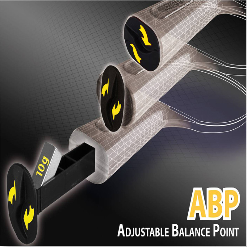 در ساختار دسته همچنین از فناوری ABP استفاده شده است که به واسطه وجود این فناوری یک خشاب در داخل دسته وجود دارد که میتوان آن را بیرون کشید، چرخاند و سپس مرکز تعادل راکت را به سادگی عوض کرد. اگر مرکز تعادل را سمت سر راکت تغییر دهیم، میتوان ضربات محکمتری به توپ وارد کرد و بازی تهاجمیتری داشت. و اگر مرکز تعادل را به سمت پایین یا دسته راکت تغییر دهیم، میتوانیم بازی دقیقتر با کنترل بیشتری داشته و بر روی توپ و ضربات خود مسلطتر باشیم. این راکت بیشتر برای بازیکنان حرفهای مناسب می باشد.