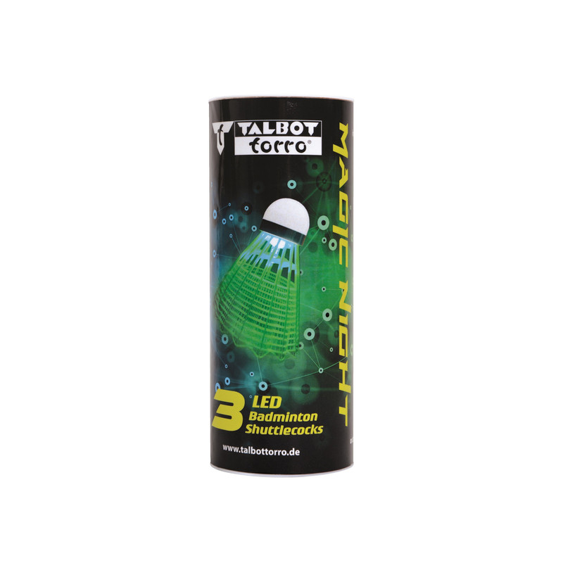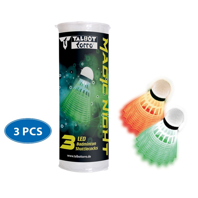 با توپ های بدمینتون ال ای دی تالبوت تورو Talbot Torro Badminton Ball Magic Night LED که به تازگی تولید شده است، اکنون می توانید در شب نیز بدمینتون بازی کنید. توپ های پلاستیکی مقاوم دارای یک کلید برای روشن کردن LED در داخل هستند. این بسته توپ شامل 3 توپ (سفید و زرد) می باشد. LED توپ سفید سبز رنگ و LED توپ بدمینتون زرد به رنگ قرمز میباشد. زمان تقریبی عمر باتری حدود 48 ساعت است. توپ های LED مجهز به باتری CR927 هستند. باتری قابل تعویض نیست. هر بسته دارای 2 عدد توپ ال ای دی دار سفید رنگ و 1 عدد توپ ال ای دی دار زرد رنگ میباشد.