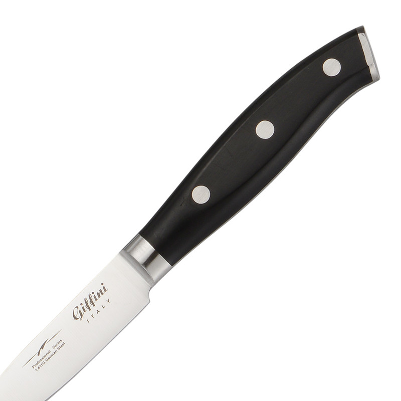 چاقوی آشپزخانه جی فی نی از بهترین و معتبر ترین برندهای جهان میباشد که تمام مراحل طراحی ان در شرکت GIFFINI ایتالیا انجام میشود و برای تولید ان از بهترین و با کیفیت ترین الیاژ جهان استفاده شده که در کار کردن با این چاقو شما ان را کاملا حس کرده و لذت آشپزی را برای شما چند برابر خواهد کرد و بدلیل طراحی دسته و بدنه یک تکه این چاقو هرگز دسته ان جدا نخواهد شد و شما را سالیان سال از خرید مجددا ان بی نیاز خواهد کرد