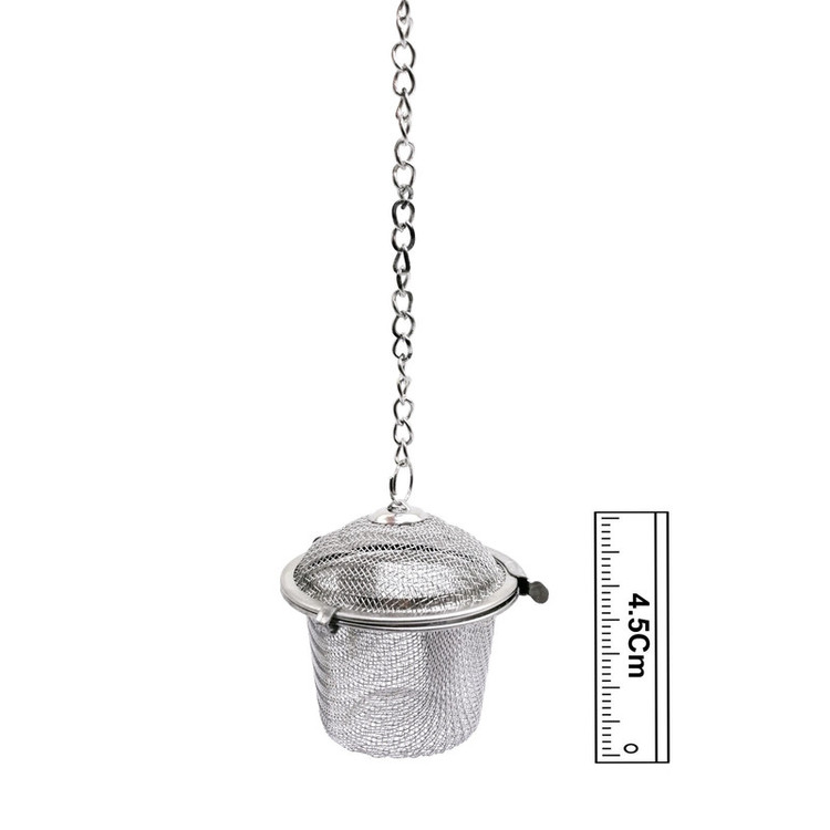 دمنوش ساز استیل با ارتفاع 4.5 سانتیمتر مناسب برای انواع دمنوش و چای و دارای زنجیر برای آویزان کردن بر لبه لیوان و قوری میباشد.