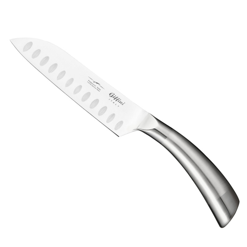 ست چاقو آشپزخانه جی فی نی شامل یک قیچی، یک ساطور، یک چاقوتیزکن، یک پایه نگهدارنده و سه چاقو است که هرکدام با کاربردهای متفاوتشان، هنگام آشپزی به کدبانوی خانه کمک بسزایی خواهند کرد. با استفاده از چاقوهای بزرگ میتوانید انواع گوشت و مرغ را بهسادگی تمیز کرده و بهصورت قطعات کوچکتر خرد کنید و چاقوهای کوچکتر نیز برای خرد کردن سبزیجات و... مناسب هستند. همانطور که در تصاویر دیده میشود، این مدل دارای یک پایه یا استند است که تمام ابزار را در یکجا و در کنار یکدیگر جمع میکند. با قرار دادن پایه روی یکی از کانترهای آشپزخانه، علاوه بر ایجاد ظاهری مدرن و چشمنواز در دکوراسیون محیط، بهسادگی به تمام ابزارها و چاقوهای موردنیازتان دسترسی خواهید داشت. یکی از ویژگیهای جالب این پایه، کوچک بودن ان هست که کا را برای کدبانوی منزل بسیار آسانتر خواهد شد. اگر بعد از استفادهی مداوم تیغهی چاقوها کُند شد، با تیز کنندهی موجود در این ست، قادر هستید این ابزار را دوباره تیز و بُرنده کنید. .چاقو های جی فی نی از کیفیت بسیار مطلوبی برخوردار هستند و انتخابی مناسب برای تکمیل جهیزیهی نوعروسان به شمار میآیند