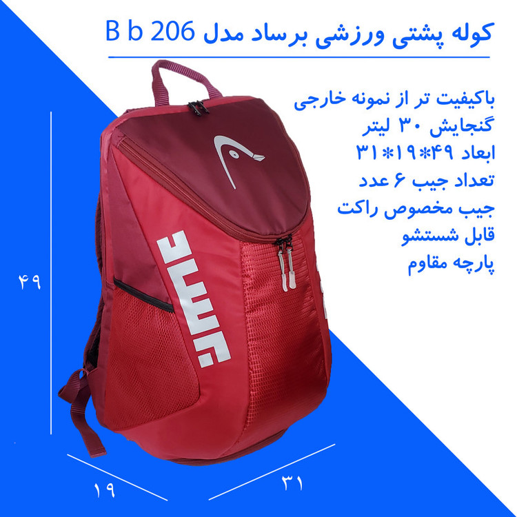 کوله پشتی ورزشی برساد مدل Bb 208 دارای طراحی خاص و با کیفیت بالاتر از نمونه خارجی برای استفاده ورزشکاران ، باشگاه ، پیاده روی و طبیعت گردی و برای مسافرت تولید شده است. امکان حمل وسایل مختلف از قبیل لباس ورزشی، وسایل باشگاه، مواد خوراکی، بطری آب، توپ، راکت تنیس و سایر وسایل همچون گوشی و پاوربانک و هندزفری ، کلید و فلش و ، مدارک، خودکار و دفترچه یادداشت و ... با کوله پشتی ورزشی برساد مدل Bb 208 براحتی امکانپذیر است.