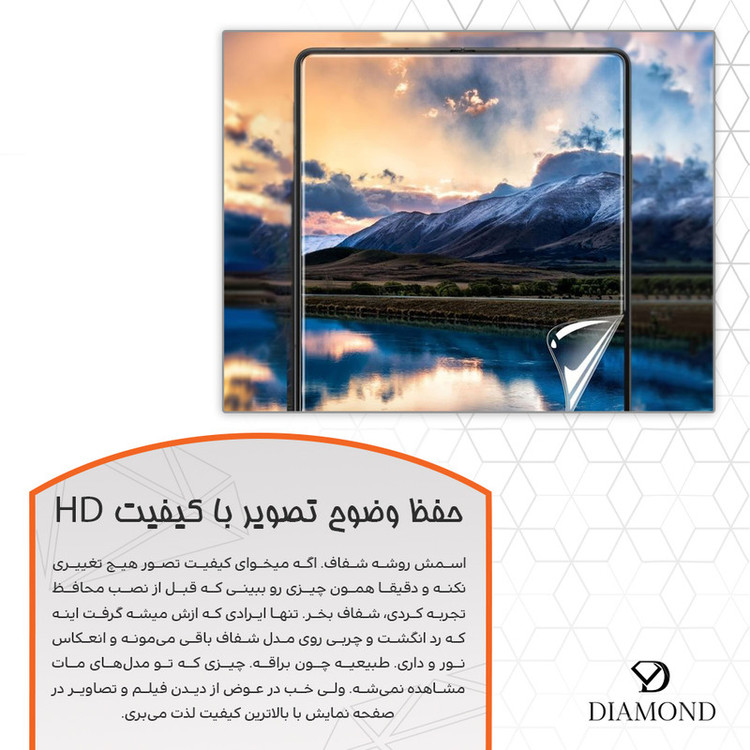 خاصیت خودترمیمی: گلسهای هیدروژلی شفاف دیاموند به راحتی قادرند آسیبهای سطحی مانند خط و خش و حبابها را در عرض 72 ساعت به طور خودکار ترمیم کنند. محافظت در برابر ضربه و خط و خش: این گلسها نسبت به گلسهای معمولی از مقاومت بسیار بالاتری برخوردارند و حتی در برابر ضربات شدید نیز به خوبی از صفحه نمایش گوشی شما محافظت میکنند. این ویژگی احتمال ترک خوردگی و شکستگی صفحه نمایش را به حداقل میرساند. پوشش کامل صفحه: گلسهای هیدروژلی شفاف دیاموند به صورت کامل و دقیق تمام صفحه نمایش گوشی شما را پوشش میدهند. این گلسها به راحتی بر روی صفحه نمایش قرار میگیرند و سایزشان مخصوص گوشی شما طراحی شده است تا به صورت کاملاً استاندارد روی صفحه نشسته و محکم باقی بماند. ضخامت کم و پاسخدهی سریع: گلسهای هیدروژلی شفاف دیاموند با ضخامت کم، سرعت واکنش تاچ گوشی شما را بدون هیچگونه تأخیر حفظ کرده و تجربهای روان و سریع در استفاده از گوشی فراهم میآورند. حذف خودکار حبابها: اگر در هنگام نصب گلس حبابهایی زیر آن ایجاد شوند، این حبابها پس از مدت کوتاهی (حدود 72 ساعت) به طور خودکار از بین میروند. این ویژگی نصب گلس را بسیار آسان و بدون دردسر میکند. شفافیت و حفظ کیفیت تصویر: گلسهای هیدروژلی شفاف دیاموند کاملاً شفاف هستند و هیچگونه تغییری در وضوح رنگها و تصویر صفحه نمایش ایجاد نمیکنند. این ویژگی باعث میشود که تماشای فیلمها، بازیها و تصاویر با رنگهای زنده و وضوح عالی تجربهای لذتبخش باشد. پیشرفت تکنولوژی هیدروژلی: با استفاده از فناوری هیدروژلی پیشرفته، گلسهای شفاف دیاموند به صفحه نمایش گوشی شما این امکان را میدهند که در هنگام استفاده طولانی مدت، حرارت کمتری تولید شود. این ویژگی باعث میشود که گوشی شما حتی در هنگام استفاده زیاد، داغ نشود و استفاده از آن راحتتر باشد. کیفیت و برند معتبر: گلسهای هیدروژلی شفاف دیاموند با کیفیت ساخت عالی و دوام بسیار بالا، انتخابی مطمئن برای محافظت از گوشی شماست. برند دیاموند همواره در تلاش است تا بهترین مواد اولیه و تکنولوژیهای روز دنیا را برای تولید محصولات خود به کار گیرد. توجه: حتماً آموزش نصب داخل بستهبندی را مشاهده کنید حتی اگر قصد دارید به موبایلفروش مراجعه کنید، از ایشان بخواهید که حتماً راهنما را مشاهده کنند.