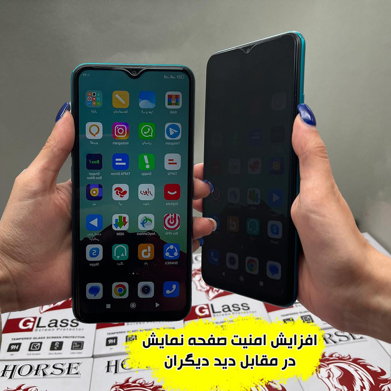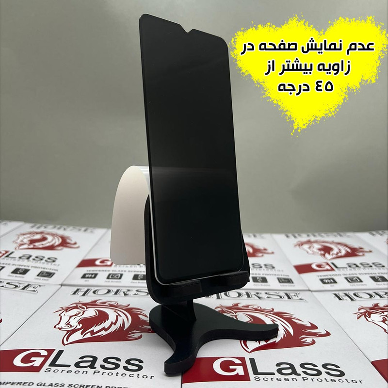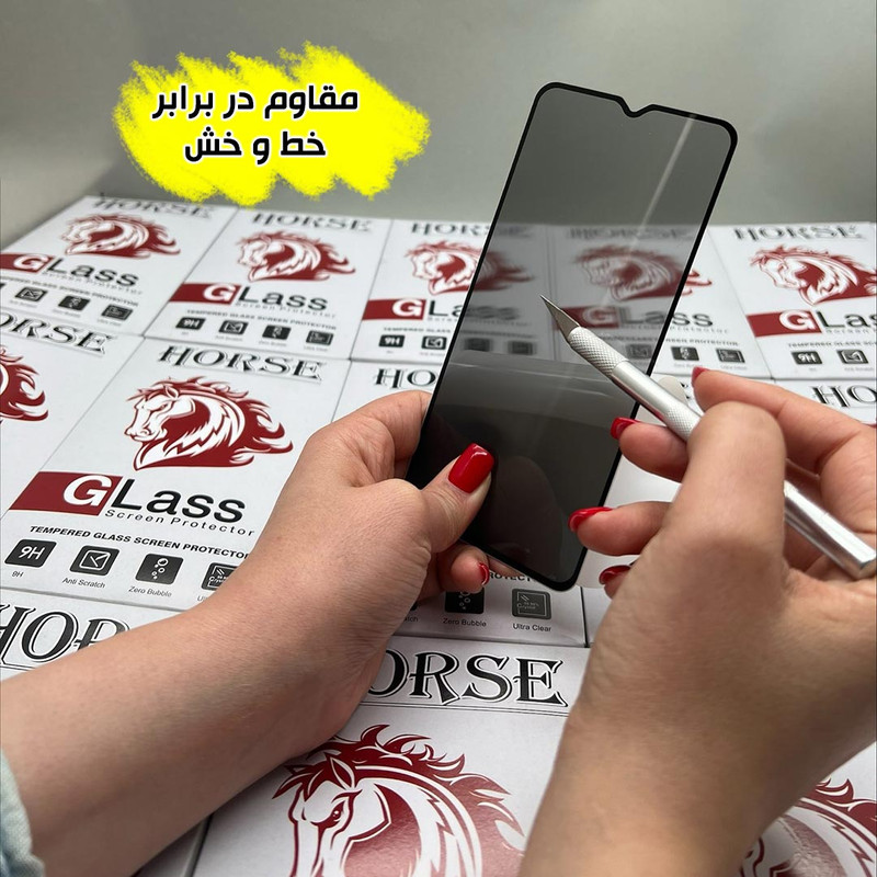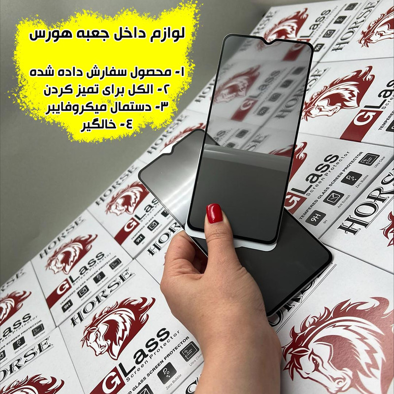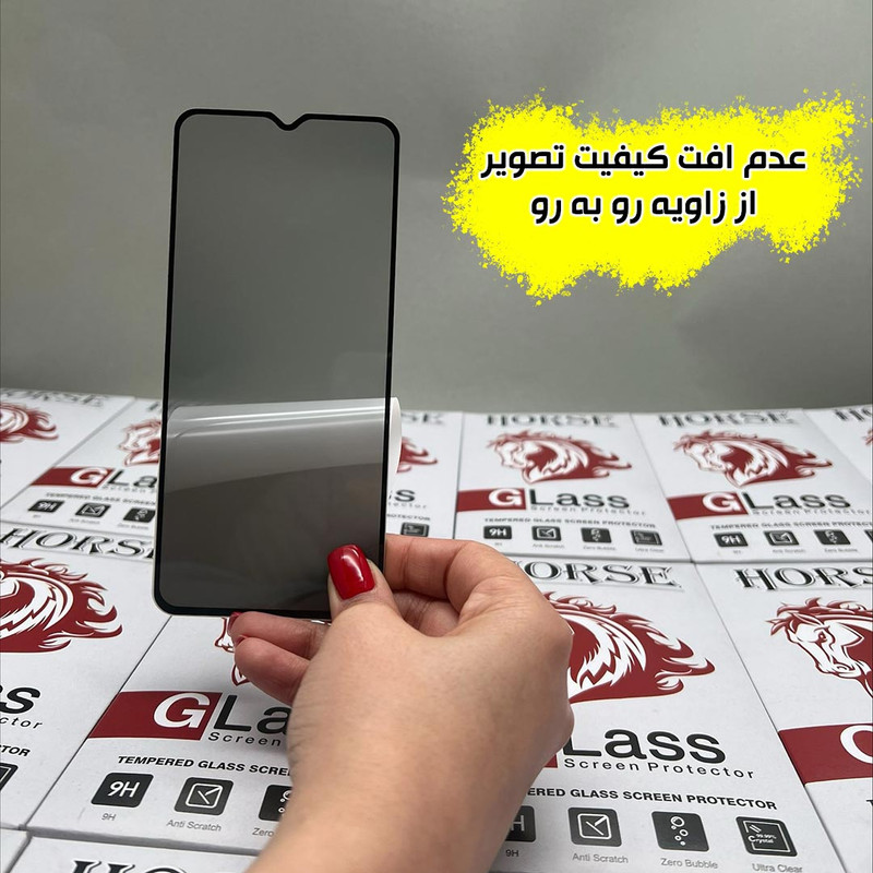 گلس حریم شخصی یا Full Privacy با برند هورس یک انتخاب بسیار مناسب برای افرادی است که نمی خواهند اطلاعات شخصی، مانند عکس یا متن هایشان توسط دیگران مخصوصا در مکان های شلوغ مثل مترو و اتوبوس دیده و خوانده شود. این نوع گلس فول پرایوسی به گونه ای طراحی شده که می تواند تمام صفحه گوشی موبایل شما را پوشش داده.ویژگی امنیتی این نوع گلس، باعث پایین آمدن کیفیت تصویر نمایشگر گوشی شما نمی شود و دید شما را نسبت به صفحه گوشی کم نمی کند. جنس آن از شیشه حرارت دیده و درجه سختی استاندارد 9H ساخته شده و نصب آسانی دارد و در صورت نصب صحیح، روی صفحه نمایش شما حباب نمی اندازد.همچنین با مقاومت بالایی که در برابر ضربه و ایجاد خط و خش دارد، می توانید با خیال راحت این گلس را تهیه نمایید.پس از نصب گلس، حتما مجددا سنسور انگشت خود را در تلفن همراهتان تعریف کنید تا نصب گلس مشکلی در شناسایی اثر انگشت شما به وجود نیاورد.