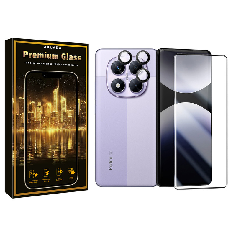 محافظ صفحه نمایش آکوآرا مدل FL Edge Ring مناسب برای گوشی موبایل شیائومی Redmi Note 14 Pro 4G به همراه محافظ لنز دوربین