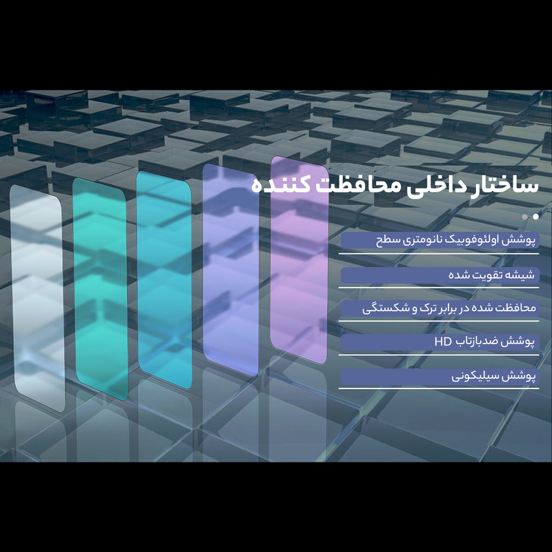 9H , جلوگیری از انعکاس نور , قابلیت نصب آسان , مقاوم در برابر چربی و اثرانگشت , مقاوم در برابر خط و خش , نصب بدون حباب