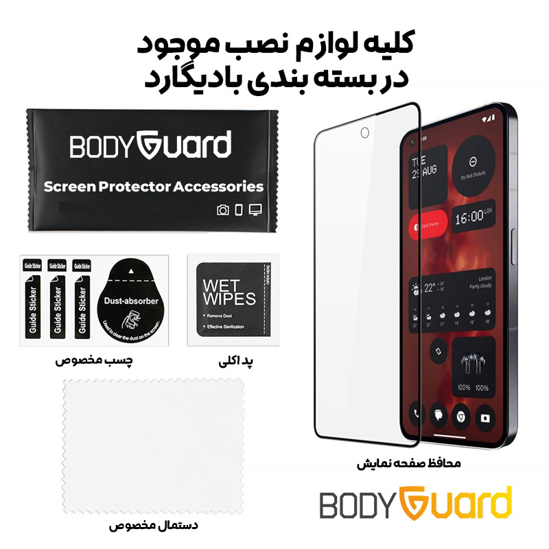 جنس شیشه ای - نصب آسان - نصب بدون حباب - تمام لوازم مورد نیاز نصب داخل بسته بندی